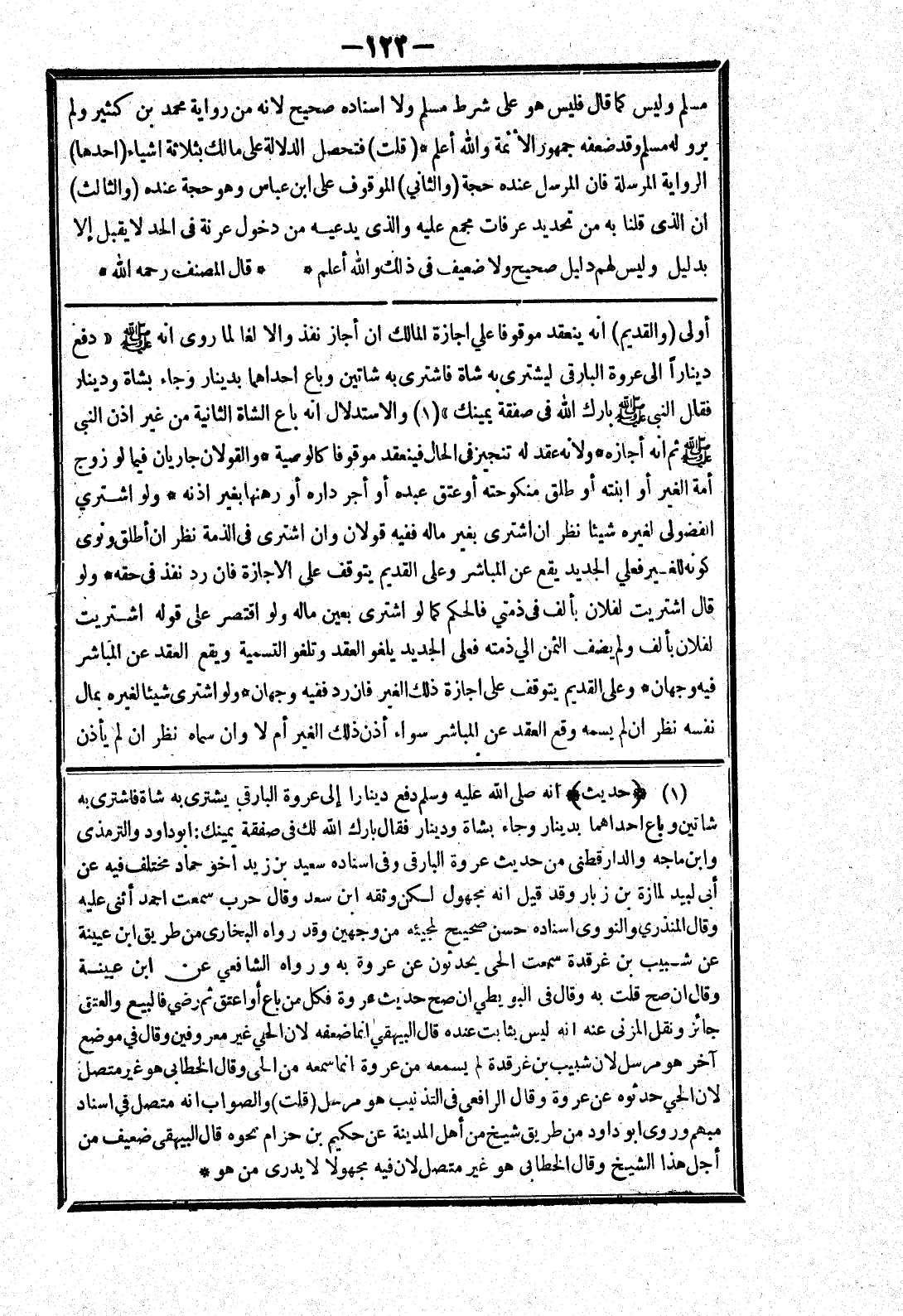 أولى (والقديم) انه ينعقد موقوفا علي اجازة المالك ان أجاز نفذ والا لغا لما روى انه صلى الله عليه وسلم (دفع دينارا إلى عروة البارقى ليشترى به شاة فاشترى به شاتين وباع احداهما بدينار وجاء بشاة ودينار فقال النبي صلى الله عليه وسلم بارك الله في صفقة يمينك) والاستدلال انه باع الشاة الثانية من غير اذن النبي صلى الله عليه وسلم ثم انه أجازه * ولانه عقد له تنجيز في الحال فينعقد موقوفا كالوصية * والقولان جاريان فيما لو زوج أمه الغير أو ابنته أو طلق من منكوحته أو عتق عبده أو أجر داره أو رهنها بغير اذنه * ولو اشتري الفضولي لغيره شيئا نظر ان اشترى بغير ماله ففيه قولان وان اشترى في الذمة نظر ان أطلق ونوى كونه للغير فعلي الجديد يقع عن المباشر وعلى القديم يتوقف على الاجازة فان رد نفذ في حقه * ولو قال اشتريت لفلان بألف في ذمتي فالحكم كما لو اشترى بعين ماله ولو اقتصر على قوله اشتريت لفلان بألف ولم يضف الثمن الي ذمته فعلى الجديد يلغو العقد وتلغو التسمية ويقع العقد عن المباشر فيه وجهان * وعلى القديم يتوقف على اجازة ذلك الغير فان رد ففيه وجهان * ولو اشترى شيئا لغيره بمال نفسه نظر ان لم يسمه وقع العقد عن المباشر سواء أذن ذلك الغير أم لا وان سماه نظر ان لم يأذن