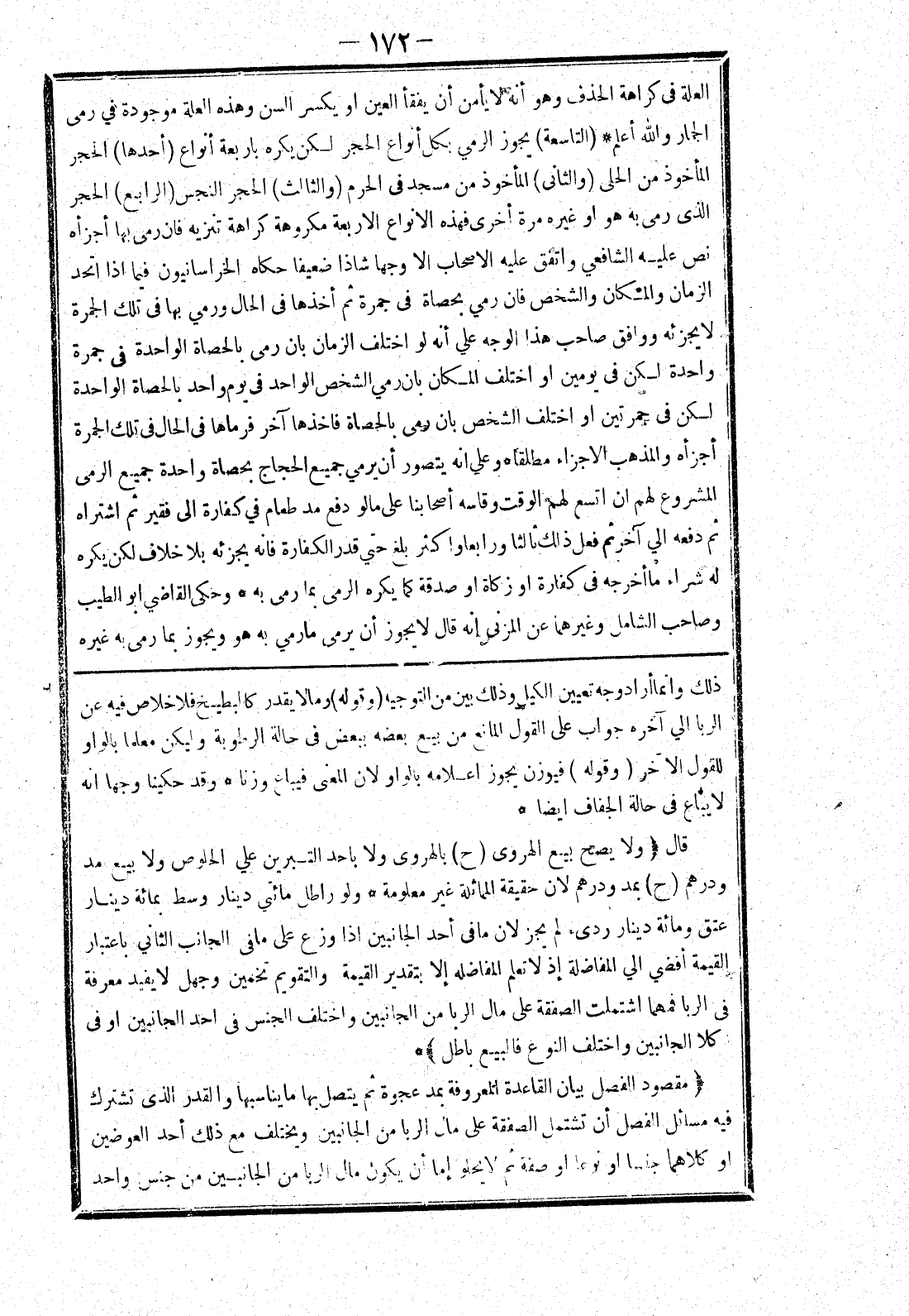 ذلك وانما أراد وجة تعيين الكيل وذلك بين من التوجيه (وقوله) وما لا يقدر كالبطيخ فلا خلاص فيه عن الربا الي آخره جواب على القول المانع من بيع بعضه ببعض في حالة الرطوبة وليكن معلما بالواو للقول الآخر (وقوله) فيوزن يجوز اعلامه بالواو لان المعنى فيباع وزنا * وقد حكينا وجها انه لا يباع في حالة الجفاف ايضا * قال (ولا يصح بيع الهروي (ح) بالهروي ولا باحد التبرين علي الخلوص ولا بيع مد ودرهم (ح) بمد ودرهم لان حقيقة المماثلة غير معلومة * ولو راطل مائتي دينار وسط بمائة دينار عتق ومائة دينار ردئ لم يجز لان ما في أحد الجانبين إذا وزع على ما في الجانب الثاني باعتبار القيمة أفضي الي المفاضلة إذ لا تعلم المفاضلة إلا بتقدير القيمة والتقويم تخمين وجهل لا يفيد معرفة في الربا فمهما اشتملت الصفقة على مال الربا من الجانبين واختلف الجنس في احد الجانبين أو في واختلف النوع فالبيع باطل) * (مقصود الفصل بيان القاعدة المعروفة بمد عجوة ثم يتصل بها ما يناسبها والقدر الذى تشترك فيه مسائل الفصل أن تشمتل الصفقة على مال الربا من الجانبين ويختلف مع ذلك أحد العوضين أو كلاهما جنسا أو نوعا اوصفة ثم لا يحلو إما أن يكون مال الربا من الجانبين من جنس واحد