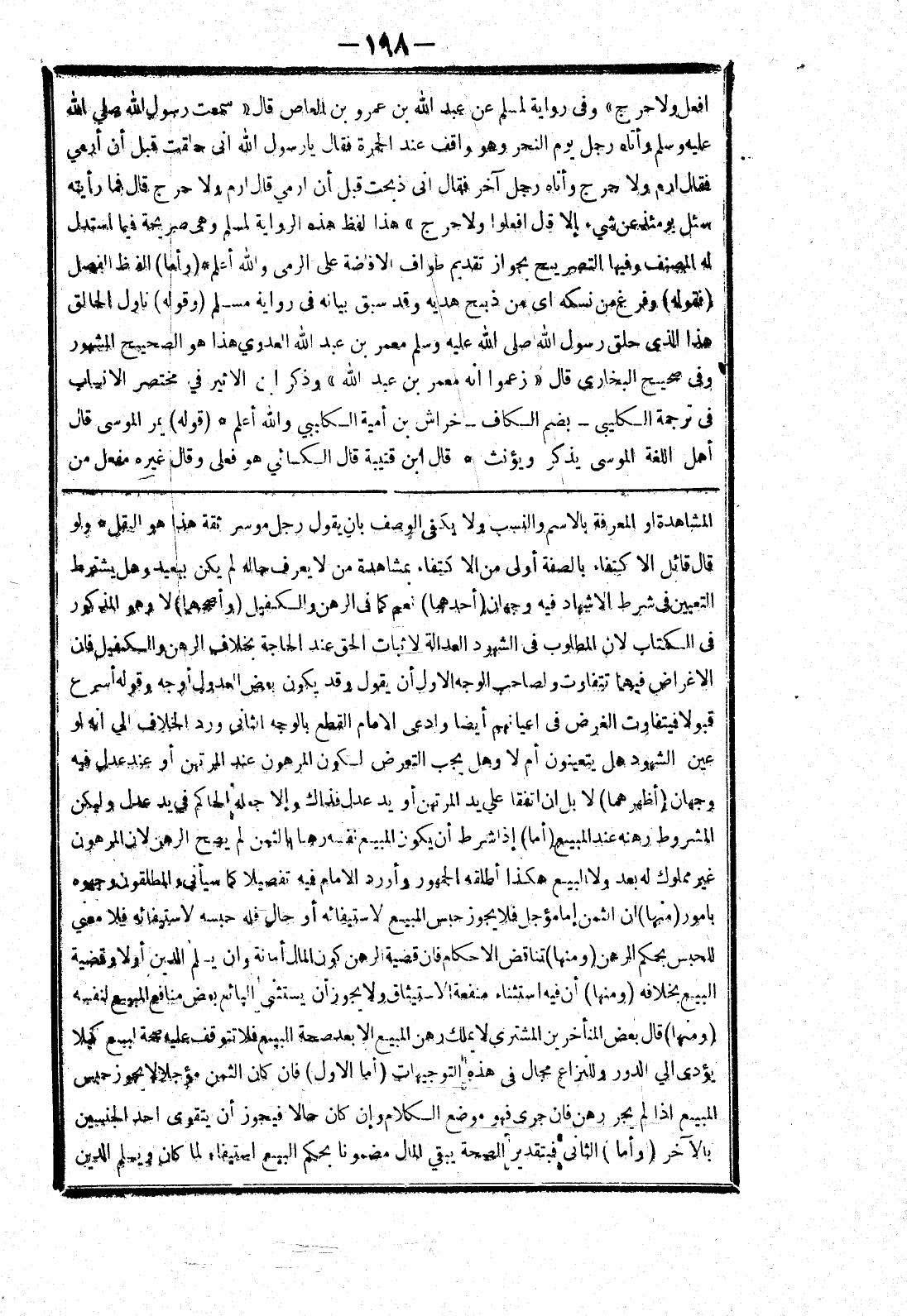 (ومنها) قال بعض المتأخرين المشترى لا يملك رهن المبيع الابعد صحة البيع فلا تتوقف عليه صحة لبيع كيلا يؤدى الي الدور وللنزاع مجال في هذه التوجيهات (أما الاول) فان كان الثمن مؤجلا لا يجوز حبس المبيع إذا لم يجر رهن فان جرى فهو موضع الكلام وإن كان حالا فيجوز أن يتقوى احد الجنسيين بالآخر (وأما) الثاني فبتقدير الصحة يبقي المال مضمونا بحكم البيع استيفاء لما كان ويسلم الدين