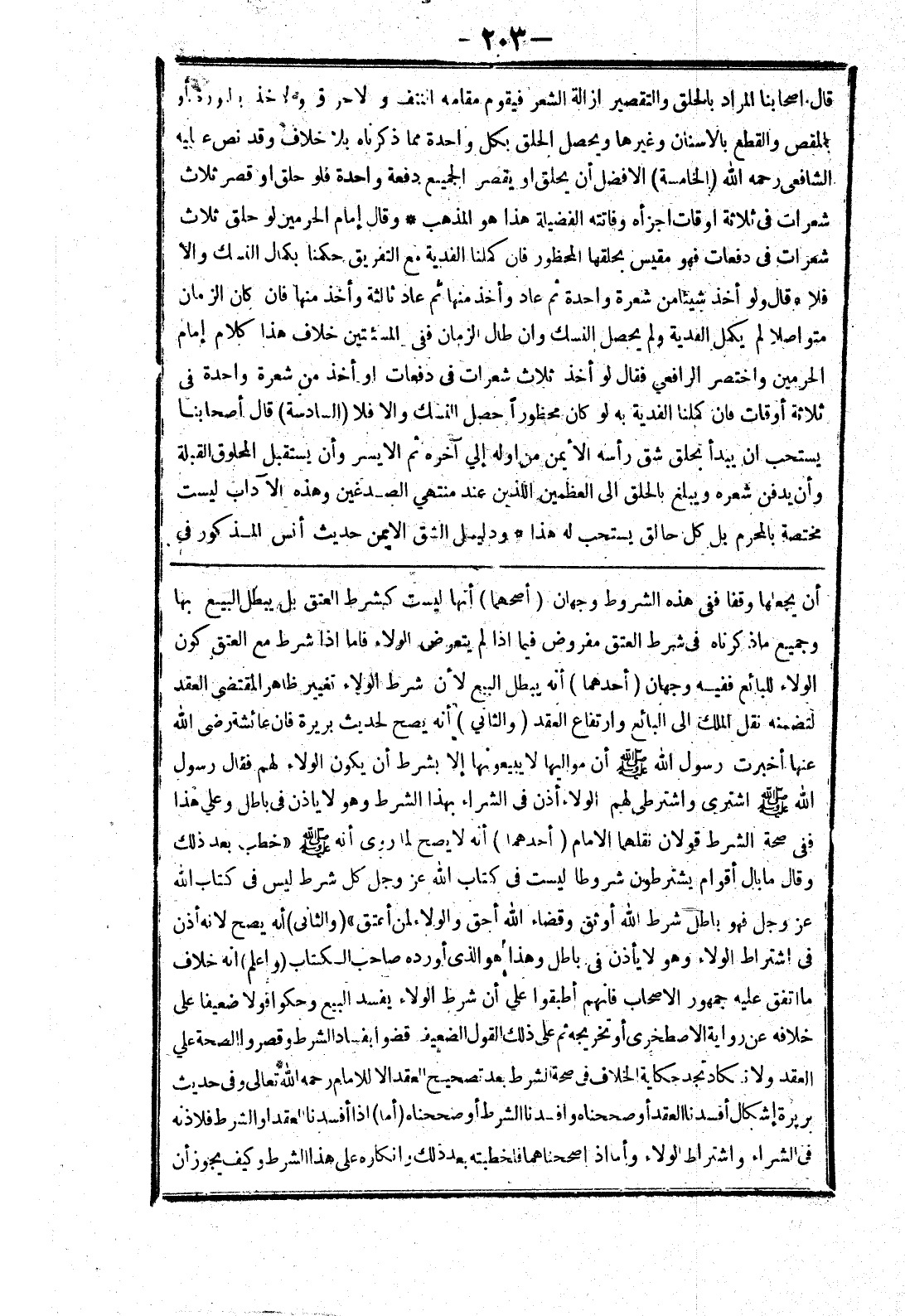 أن يجعلها وقفا ففى هذه الشروط وجهان (أصحهما) أنها ليست كشرط العتق بل يبطل البيع بها وجميع ما ذكرناه في شرط العتق مفروض فيما إذا لم يتعرض الولاء فاما إذا شرط مع العتق كون الولاء للبائع ففيه وجهان (أحدهما) أنه يبطل البيع لان شرط الولاء تغيير ظاهر المقتضى العقد لتضمنه نقل الملك إلى البائع وارتفاع العقد (والثاني) أنه يصح لحديث بريرة فان عائشة رضى الله عنها أخبرت رسول الله صلى الله عليه وسلم أن مواليها لا يبيعونها إلا بشرط أن يكون الولاء لهم فقال رسول الله صلى الله عليه وسلم اشترى واشترطي لهم الولاء أذن في الشراء بهذا الشرط وهو لا ياذن في باطل وعلي هذا ففى صحة الشرط قولان نقلهما الامام (أحدهما) أنه لا يصح لما روى أنه صلى الله عليه وسلم (خطب بعد ذلك وقال ما بال أقوام يشترطون شروطا ليست في كتاب الله عزوجل كل شرط ليس في كتاب الله عز وجل فهو باطل شرط الله أوثق وقضاء الله أحق والولاء لمن أعتق) (والثانى) أنه يصح لانه أذن في اشتراط الولاء وهو لا يأذن في باطل وهذا هو الذى أورده صاحب الكتاب (وأعلم) انه خلاف ما اتفق عليه جمهور الاصحاب فانهم أطبقوا على أن شرط الولاء يفسد البيع وحكموا قولا ضعيفا على خلافه عن رواية الاصطخرى أو تخريجه ثم على ذلك القول الضعيف قضوا بفساد الشرط وقصروا الصحة علي العقد ولا تكاد تجد حكاية الخلاف في صحة الشرط بعد تصحيح العقد الا للامام رحمه الله تعالى وفى حديث بريرة إشكال أفسدنا العقد أو صححناه وافسدنا الشرط أو صححناه (أما) إذا أفسدنا العقد أو الشرط فلاذنه في الشراء واشتراط الولاء وأما إذا صححهناهما فلخطبته بعد ذلك وانكاره على هذا الشرط وكيف يجوز أن