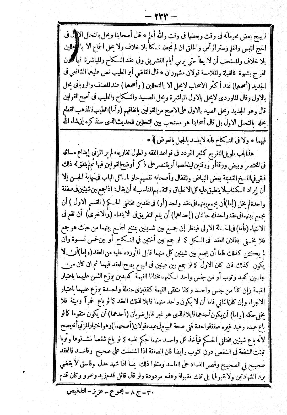 فيهما * ولا في النكاح فانه لا يفسد بالجهل بالعوض) * هذا باب طويل التفريع كثير التردد في قواعد الفقه ولطول تفاريعه لم ير المزني إيداع مسائله في المختصر وبيض ورقة أو ورقتين ليلخصها أو يقتصر على ذكر أوضح القولين فيها ثم لم يتفق له ذلك