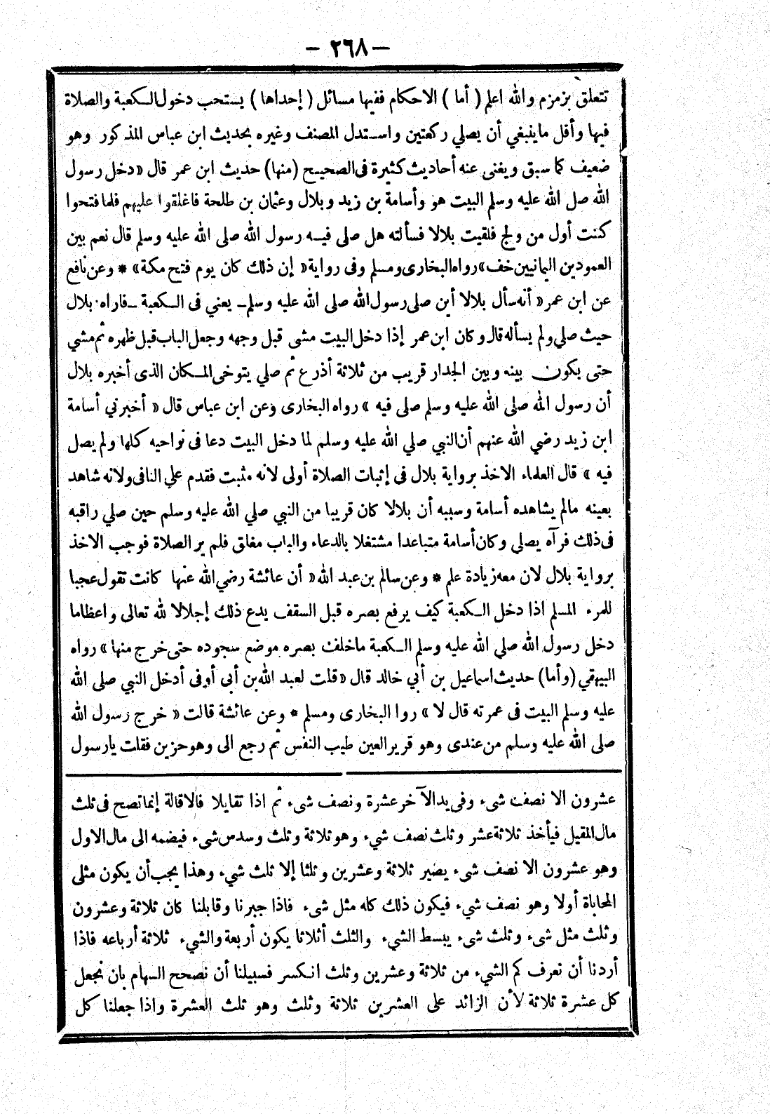 عشرون الا نصف شئ وفي يد الاخر عشرة ونصف شئ ثم إذا تقايلا فالاقالة إنما تصح في ثلث مال المقيل فيأخذ ثلاثة عشر وثلث نصف شئ وهو ثلاثة وثلث وسدس شئ فيضمه إلى مال الاول وهو عشرون الا نصف شئ يصير ثلاثة وعشرين وثلثا إلا ثلث شئ وهذا يجب أن يكون مثلى المحاباة أولا وهو نصف شئ فيكون ذلك كله مثل شئ فإذا جبرنا وقابلنا كان ثلاثة وعشرون وثلث مثل شئ وثلث شئ يبسط الشي والثلث أثلاثا يكون أربعة والشئ ثلاثة أرباعه فإذا أردنا أن نعرف كم الشئ من ثلاثة وعشرين وثلث انكسر فسبيلنا أن نصحح السهام بان نجعل كل عشرة ثلاثة لان الزائد على العشرين ثلاثة وثلث وهو ثلث العشرة وإذا جعلنا كل