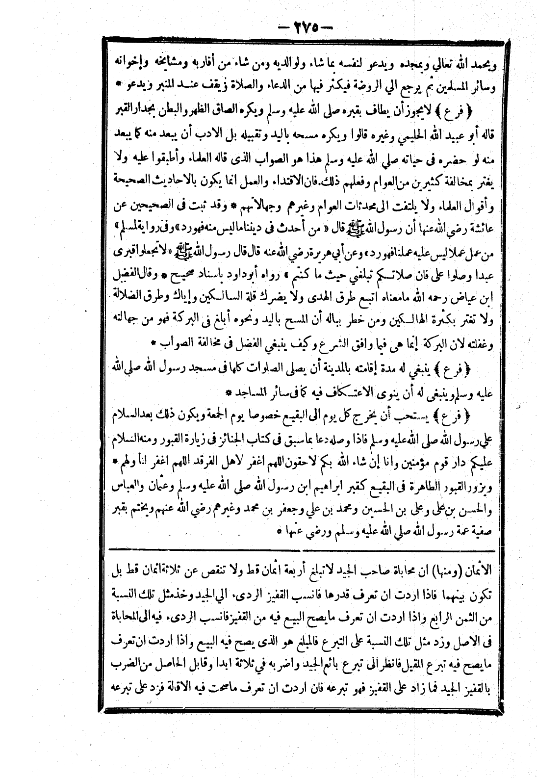الاثمان (ومنها) ان محاباة صاحب الجيد لا تبلغ أربعة اثمان قط ولا تنقص عن ثلاثة اثمان قط بل تكون بينهما فإذا اردت ان تعرف قدرها فانسب القفيز الردئ إلى الجيد وخذ مثل تلك النسبة من الثمن الرابع وإذا اردت ان تعرف ما يصح البيع فيه من القفيز فانسب الردئ فيه لى المحاباة في الاصل وزد مثل تلك النسبة على التبرع فالمبلغ هو الذي يصح فيه البيع وإذا اردت ان تعرف ما يصح فيه تبرع المقيل فانظر إلى تبرع بائع الجيد واضربه في ثلاثة ابدا وقابل الحاصل من الضرب بالقفيز الجيد فما زاد على القفيز فهو تبرعه فان اردت ان تعرف ما صحت فيه الاقالة فزد على تبرعه