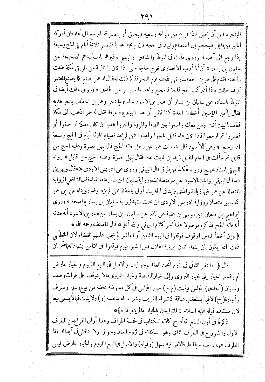 قال (والنظر الثاني في لزوم اتحاد العقد وجوازه) والاصل في البيع اللزوم والخيار عارض ثم ينقسم الخيار إلى خيار التروي والى خيار النقيصة وخيار التروي مالا يتوقف على فوات وصف وسببان (أحدهما) المجلس فيثبت (م ح) خيار المجلس في كل معاوضة محضة من بيع وسلم وصرف واجارة (ح) لا فيما يستعقب عتاقة كشراء القريب وشراء العبد نفسه (و) ولا يثبت فيما لا يسمي بيعا لان مستنده قوله عليه السلام (المتبايعان بالخيار ما لم يتفرقا) * ذكرنا في أول البيع انه أدرج كلام الكتاب في خمسة اطراف وهذا أوان الفراغ من الطرف الاول والشروع في الطر ف الثاني وهو الكلام في لزوم العقد وجوازه ولا نناقش في أبداله لفظ الطرف ههنا وبعده بالنظر فالامر فيه سهل (وقوله) والاصل في البيع اللزوم والخيار عارض ليس