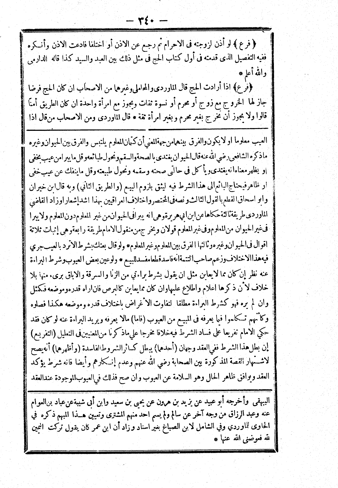 العيب معلوما أو لا يكون والفرق بينهما من جهة المعنى أن كتمان المعلوم يلتبس والفرق بين الحيوان وغيره ما ذكره الشافعي رضي الله عنه قال الحيوان يغتدى بالصحة والسقم ونحول طبائعه وقل مايبرا من عيب بخفى أو يظهر معناه انه يغتدى ويأكل في حالتي صحته وسقمه ونحول طبيعته وقل ما ينفك عن عيب خفي أو ظاهر فيحتاج البائع إلى هذا الشرط فيه ليثق بلزوم البيع (والطريق الثاني) وبه قال ابن خيران وابو إسحاق القطع بالقول الثالث ونصه في المختصر واختلاف العراقيين بهذا اشد إشعارا وزاد القاضي الماوردي طريقة ثالثة حكاها عن ابن ابي هريرة وهي انه يبرا في الحيوان من غير المعلوم دون المعلوم ولا يبرا في غير الحيوان من المعلوم وفي غير المعلوم قولان ويخرج من منقول الامام طريقة رابعة وهي إثبات ثلاثة اقوال في الحيوان وغيره وثالثها الفرق بين المعلوم وغير المعلوم * ولو قال بعتك بشرط الا ترد بالعيب جرى