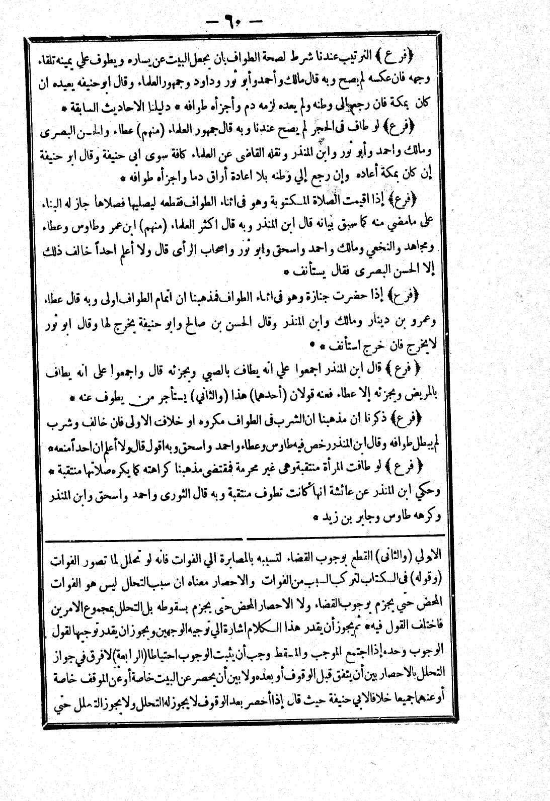 الاولى (والثانى) القطع بوجوب القضاء لتسببه بالمصابرة إلى الفوات فانه لو تحلل لما تصور الفوات (قوله) في الكتاب لتركب السبب من الفوات والاحصار معناه ان سبب التحلل ليس هو الفوات المحض حتي يجزم بوجوب القضاء ولا الاحصار المحض حتى يجزم بسقوطه بل التحلل بمجموع الامرين فاختلف القول فيه * ثم يجوز أن يقدر هذا الكلام اشارة الي توجيه الوجهين ويجوز ان يقدر توجيها لقول الوجوب وحده إذا اجتمع الموجب والمسقط وجب أن يثبت الوجوب احتياطا (الرابعة) لافرق في جواز التحلل بالاحصار بين أن يتفق قبل الوقوف أو بعده ولا بين أن يحصر عن البيت خاصة أو عن الموقف خاصة أو عنهما جميعا خلافا لابي حنيفة حيث قال إذا أحصر بعد الوقوف لا يجوز له التحلل ولا يجوز التحلل حتي