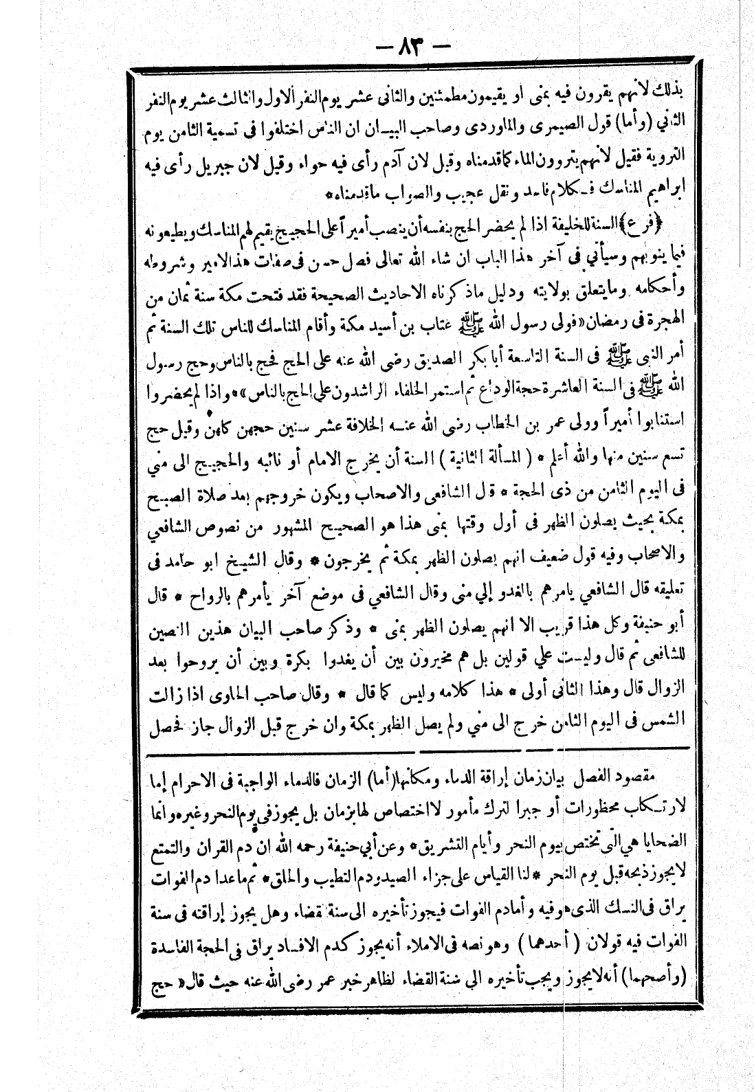 مقصود الفصل بيان زمان إراقة الدماء ومكانها (أما) الزمان فالدماء الواجبة في الاحرام إما لارتكاب محظورات أو جبرا لترك مأمور لا اختصاص لها بزمان بل يجوز في يوم النحر وغيره وانما الضحايا هي التى تختص بيوم النحر وأيام التشريق * وعن أبي حنيفة رحمه الله ان دم القران والتمتع لا يجوز ذبحه قبل يوم النحر * لنا القياس على جزاء الصيد ودم التطيب والحلق * ثم ما عدا دم الفوات يراق في النسك الذى هو فيه وأما دم الفوات فيجوز تأخيره إلى سنة القضاء وهل يجوز إراقته في سنة الفوات فيه قولان (أحدهما) وهو نصه في الاملاء أنه يجوز كدم الافساد يراق في الحجة الفاسدة