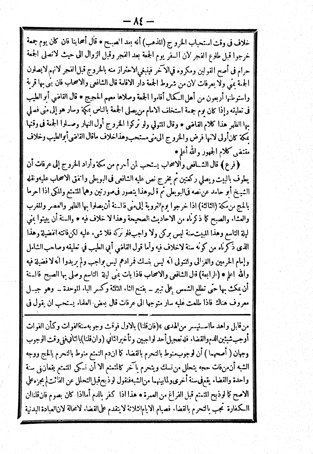 من قابل واهد ما استيسر من الهدى) (فان قلنا) بالاول فوقت وجوبه سنة الفوات وكأن الفوات أوجب شيئين الدم والقضاء فله تعجيل أحد لواجبين وتأخير الثاني (وان قلنا) بالثاني ففى وقت الوجوب وجهان (أصحهما) أن لوجوب منوط بالتحريم بالقضاء كما ان دم التمتع منوط بالتحرم بالحج ووجه الشبه أن من فات حجه يتحلل من نسك ويتحرم بآخر كالمتمتع الا أن نسكى المتمتع يقعان في سنة واحدة والقضاء سيقع في سنة أخرى ولما بينهما من الشبه فنقول لو ذبح قبل التحلل عن الفائت لم يجزه علي الاصح كما لو ذبح المتمتع قبل الفراغ من العمرة * هذا إذا كفر بالدم أما إذا كان بصوم فان قلنا أن الكفارة تجب بالتحرم بالقضاء فصيام الايام الثلاثة لا يتقدم على القضاء لا محالة لان العبادة البدنية