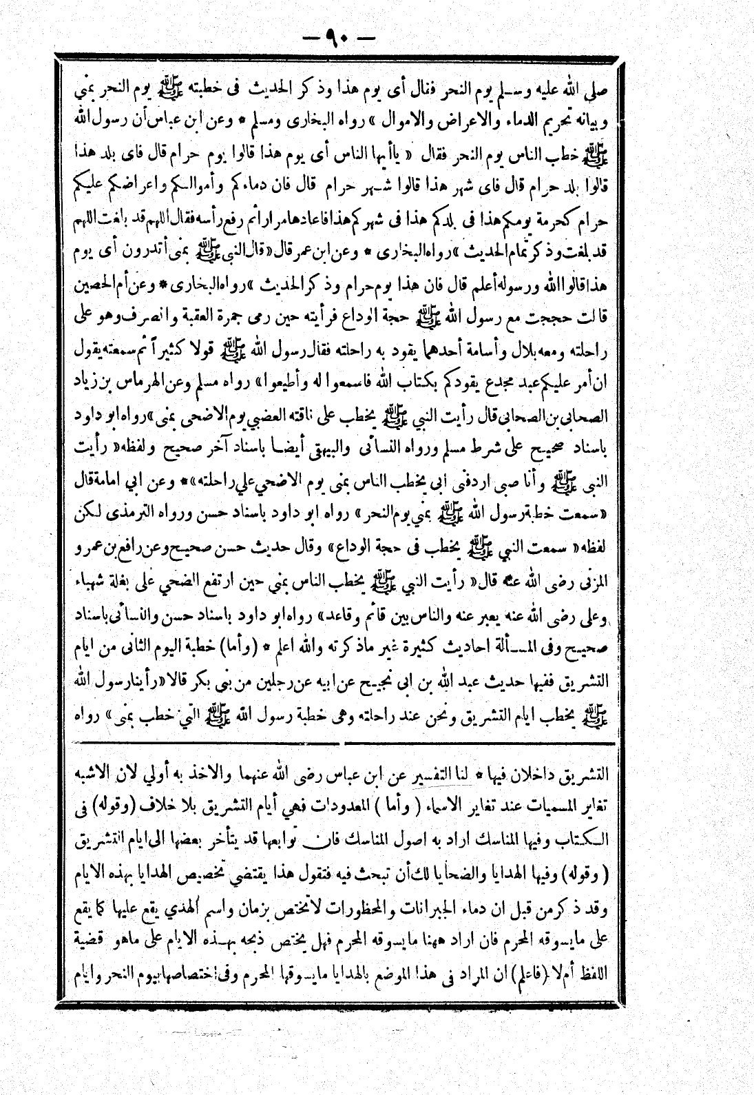 التشريق داخلان فيها * لنا التفسير عن ابن عباس رضى الله عنهما والاخذ به أولي لان الاشبه تغاير المسميات عند تغاير الاسماء (وأما) المعدودات فهي أيام التشريق بلا خلاف (وقوله) في الكتاب وفيها المناسك اراد به اصول المناسك فان توابعها قد يتأخر بعضها إلى ايام التشريق (قوله) وفيها الهدايا والضحايا لك أن تبحث فيه فتقول هذا يقتضي تخصيص الهدايا بهذه الايام وقد ذكر من قبل ان دماء الجبرانات والمحظورات لا تختص بزمان واسم الهدي يقع عليها كما يقع على ما يسوقه المحرم فان اراد ههنا ما يسوقه المحرم فهل يختص ذبحه بهذه الايام على ما هو قضية اللفظ أم لا (فاعلم) ان المراد في هذا الموضع بالهدايا ما يسوقها المحرم وفى اختصاصها بيوم النحر وايام
