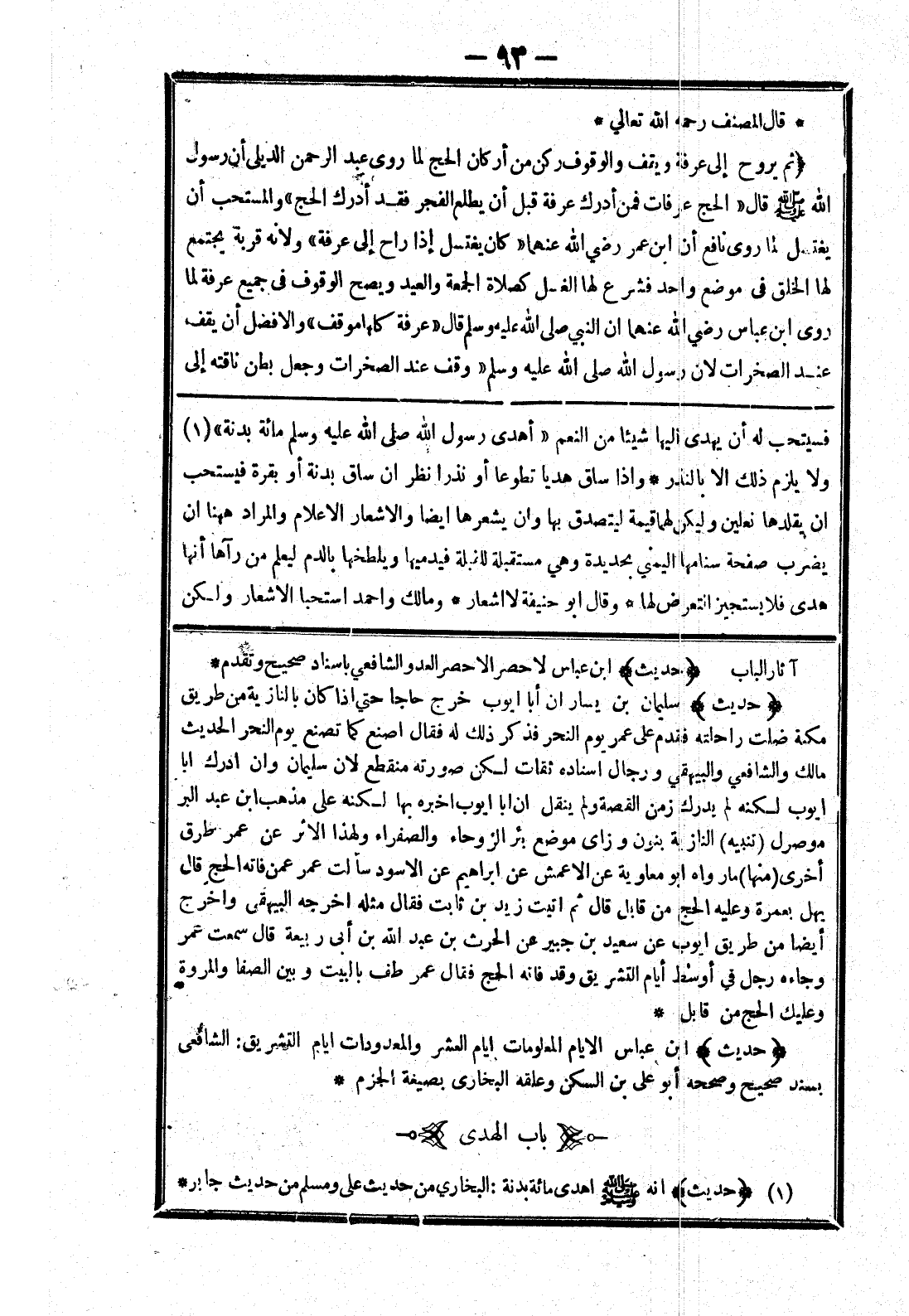 فسيتحب له أن يهدى إليها شيئا من النعم (أهدى رسول الله صلى الله عليه وسلم مائة بدنة) ولا يلزم ذلك الا بالنذر * وإذا ساق هديا تطوعا أو نذرا نظر ان ساق بدنة أو بقرة فيستحب ان يقلدها نعلين وليكن لهما قيمة ليتصدق بها وان يشعرها ايضا والاشعار الاعلام والمراد ههنا ان يضرب صفحة سنامها اليمني بحديدة وهي مستقبلة للقبلة فيدميها ويلطخها بالدم ليعلم من رآها أنها هدى فلا يستجيز التعرض لها * وقال ابو حنيفة لا اشعار * ومالك واحمد استحبا الاشعار ولكن