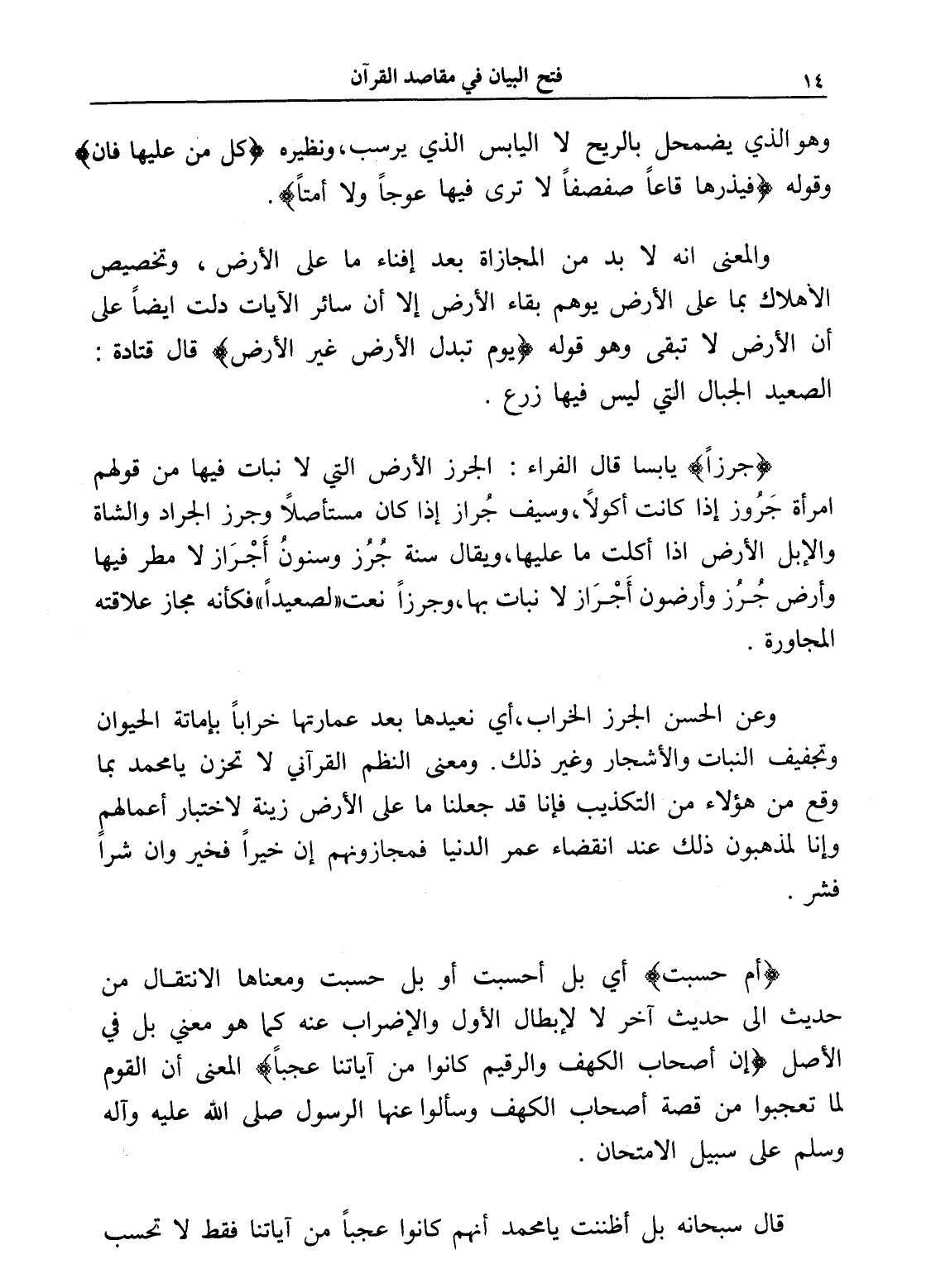 وعن الحسن الجرز الخراب، أي نعيدها بعد عمارتها خراباً بإماتة الحيوان وتجفيف النبات والأشجار وغير ذلك. ومعنى النظم القرآني لا تحزن يا محمد بما وقع من هؤلاء من التكذيب فإنا قد جعلنا ما على الأرض زينة لاختبار أعمالهم وإنا لمذهبون ذلك عند انقضاء عمر الدنيا فمجازونهم إن خيراً فخير وإن شراً فشر.