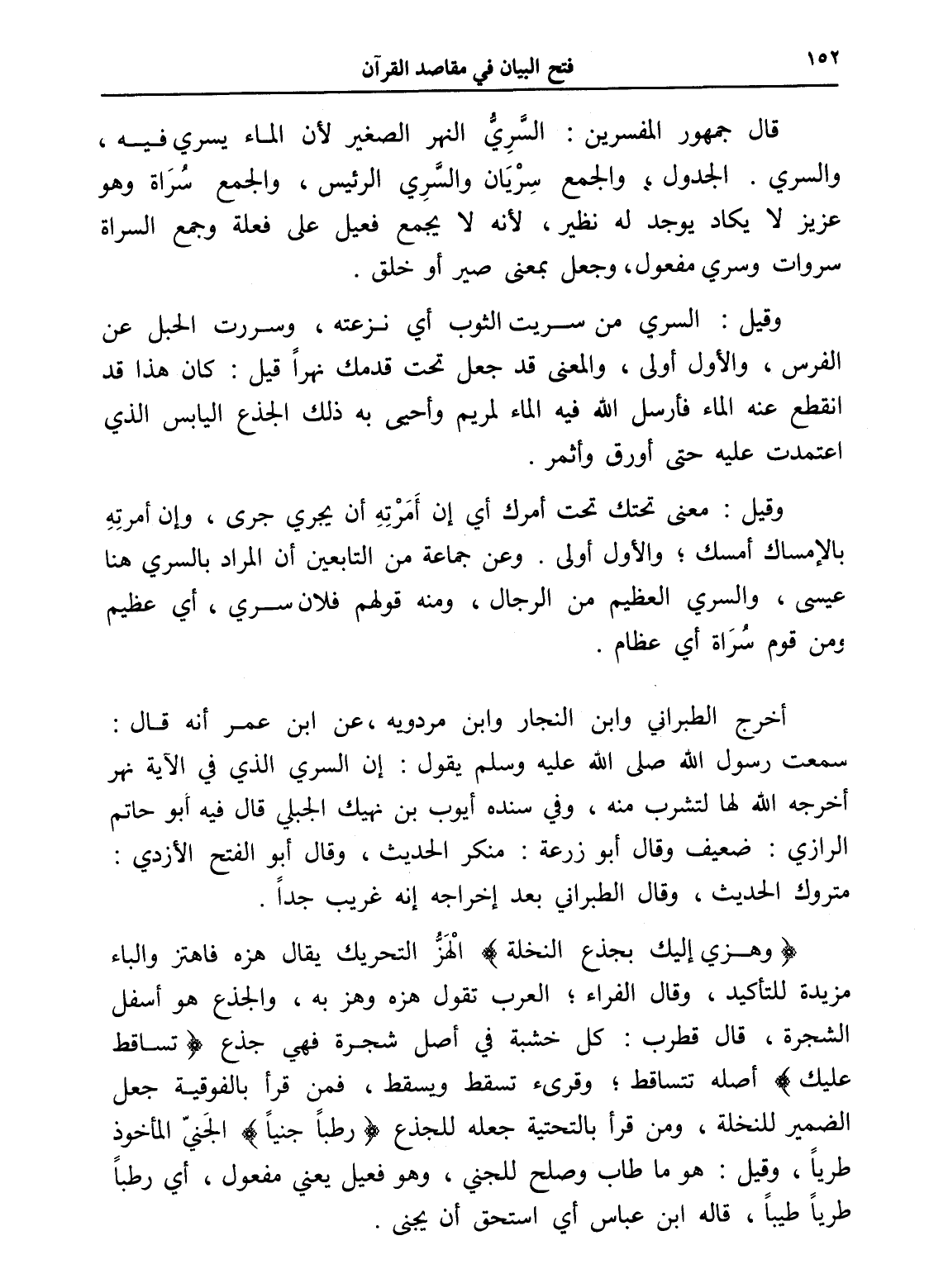وقيل: السري من سريت الثوب أي نزعته، وسررت الحبل عن الفرس، والأول أولى، والمعنى قد جعل تحت قدمك نهراً قيل: كان هذا قد انقطع عنه الماء فأرسل الله فيه الماء لمريم وأحيى به ذلك الجذع اليابس الذي اعتمدت عليه حتى أورق وأثمر.