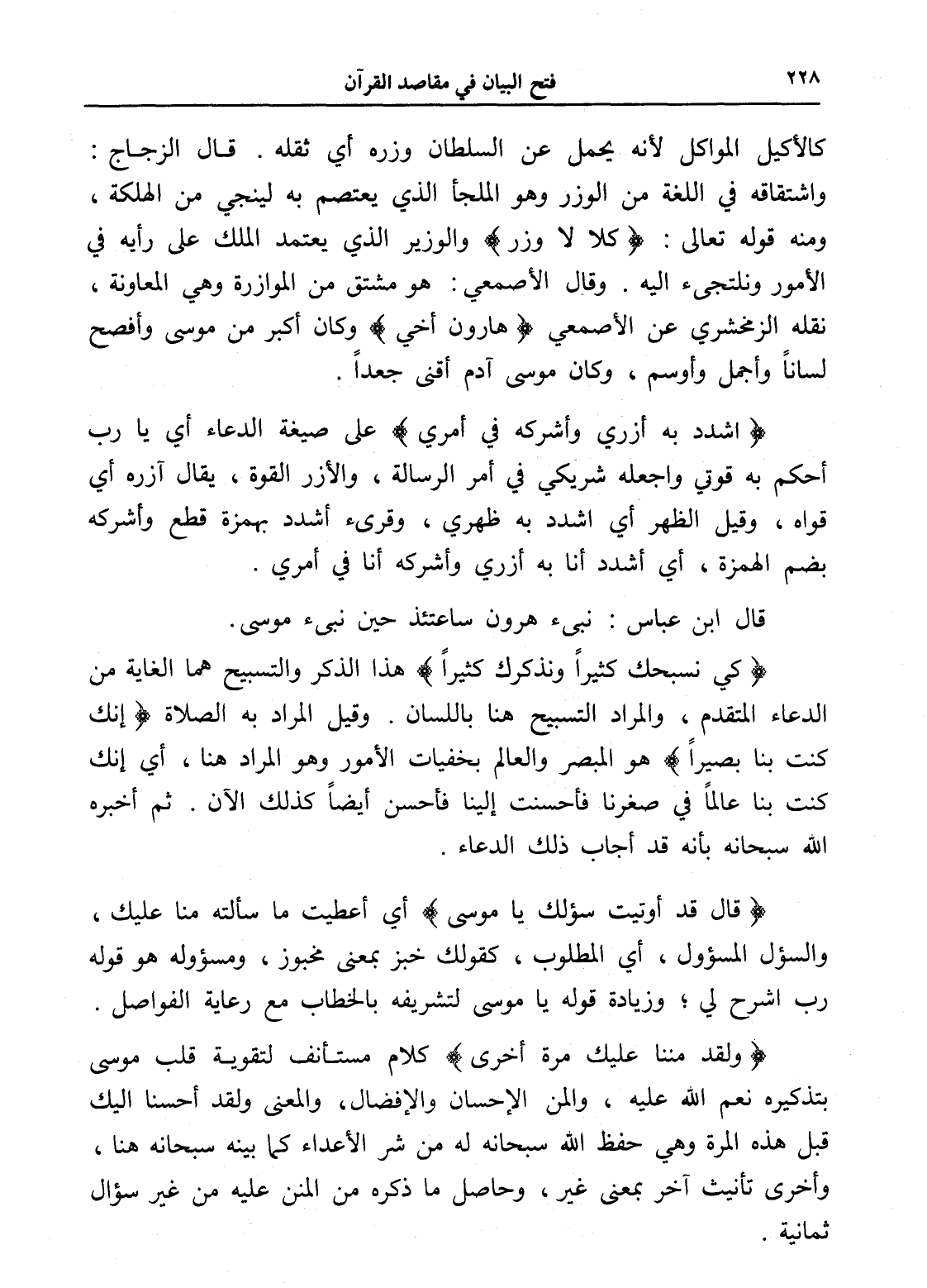 (كي نسبحك كثيراً ونذكرك كثيراً) هذا الذكر والتسبيح هما الغاية من الدعاء المتقدم، والمراد التسبيح هنا باللسان. وقيل المراد به الصلاة