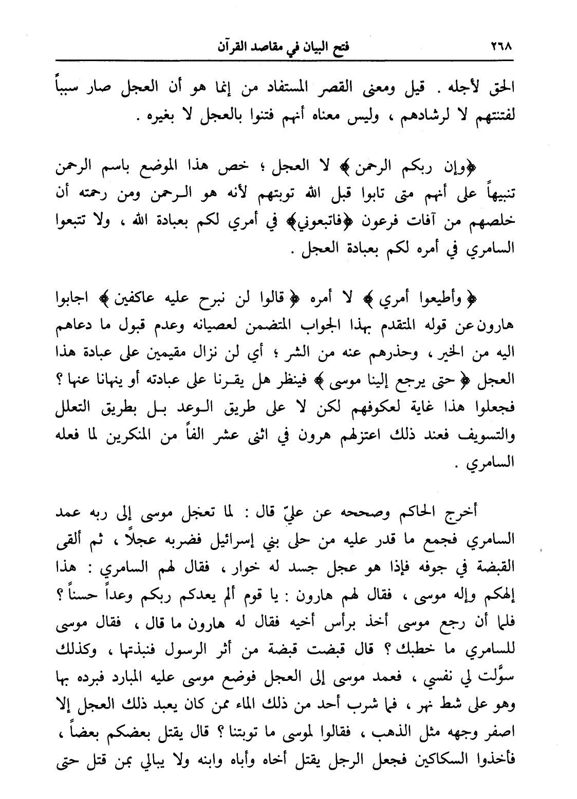 الحق لأجله. قيل ومعنى القصر المستفاد من إنما هو أن العجل صار سبباً لفتنتهم لا لرشادهم، وليس معناه أنهم فتنوا بالعجل لا بغيره.