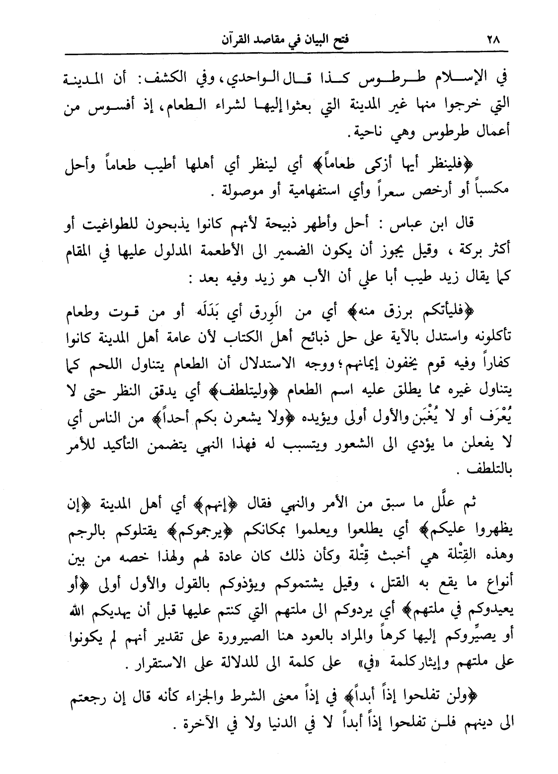 (فليأتكم برزق منه) أي من الورق أي بَدَلَه أو من قوت وطعام تأكلونه واستدل بالآية على حل ذبائح أهل الكتاب لأن عامة أهل المدينة كانوا كفاراً وفيه قوم يخفون إيمانهم؛ ووجه الاستدلال أن الطعام يتناول اللحم كما يتناول غيره مما يطلق عليه اسم الطعام (وليتلطف) أي يدقق النظر حتى لا يُعْرَف أو لا يُغْبَن والأول أولى ويؤيده (ولا يشعرن بكم أحداً) من الناس أي لا يفعلن ما يؤدي إلى الشعور ويتسبب له فهذا النهي يتضمن التأكيد للأمر بالتلطف.