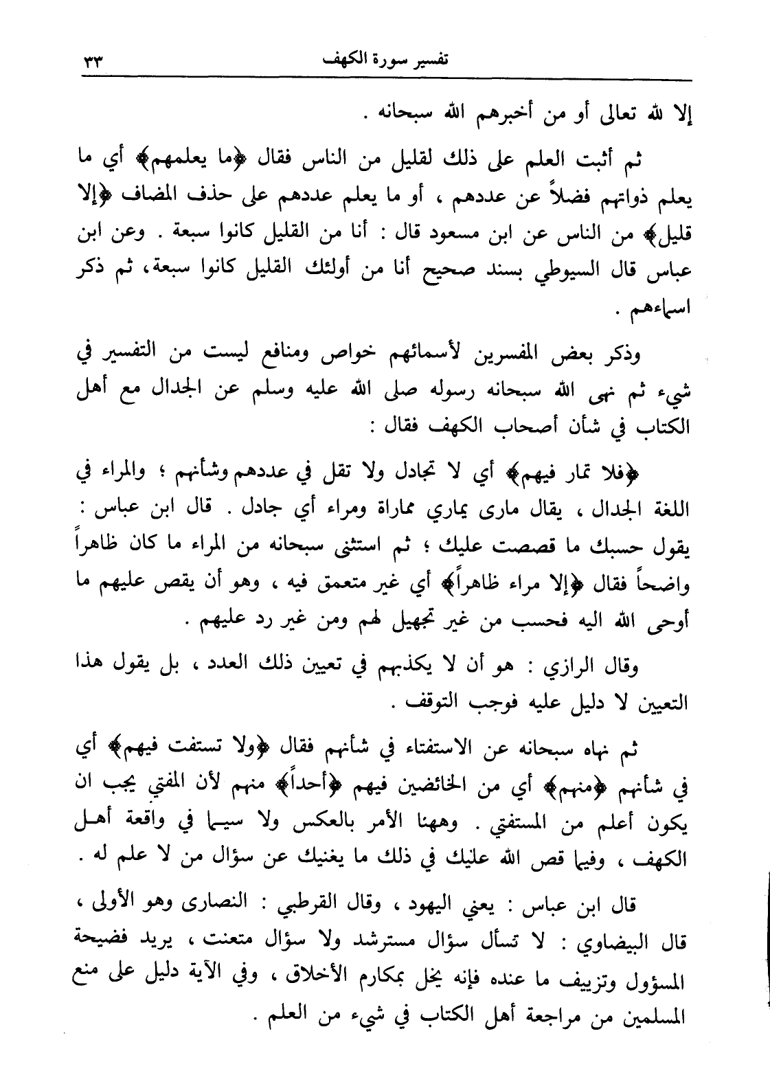 وذكر بعض المفسرين لأسمائهم خواص ومنافع ليست من التفسير في شيء ثم نهى الله سبحانه رسوله صلى الله عليه وسلم عن الجدال مع أهل الكتاب في شأن أصحاب الكهف فقال: