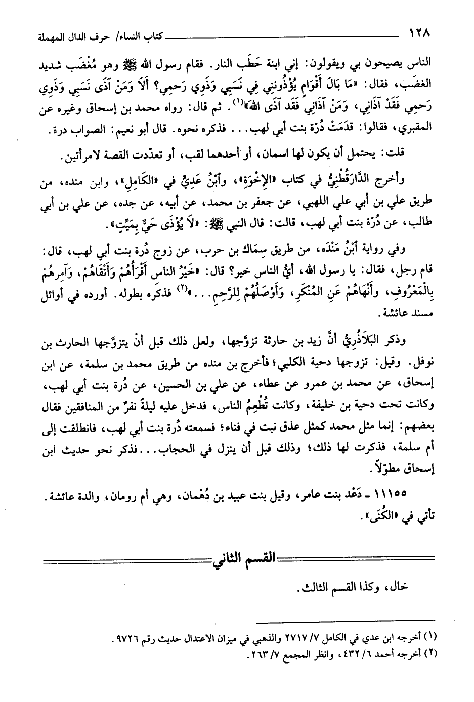 ثم قال: رواه محمد بن إسحاق وغيره عن المقبري، فقالوا: قدمت درّة بنت أبي لهب ... فذكره نحوه. قال أبو نعيم: الصواب درة.