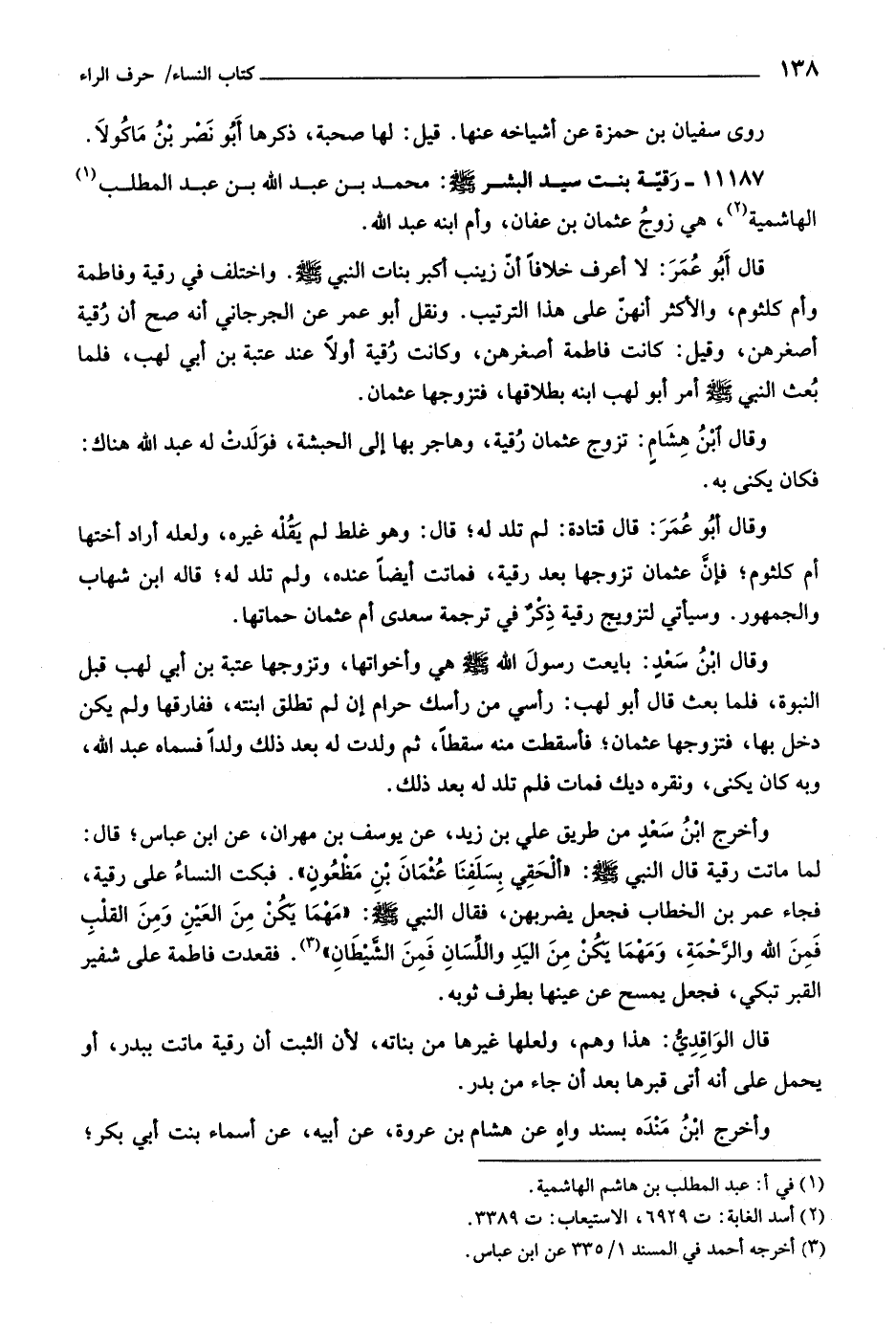 ١١١٨٧- رقيّة بنت سيد البشر صلّى اللَّه عليه وسلّم:
