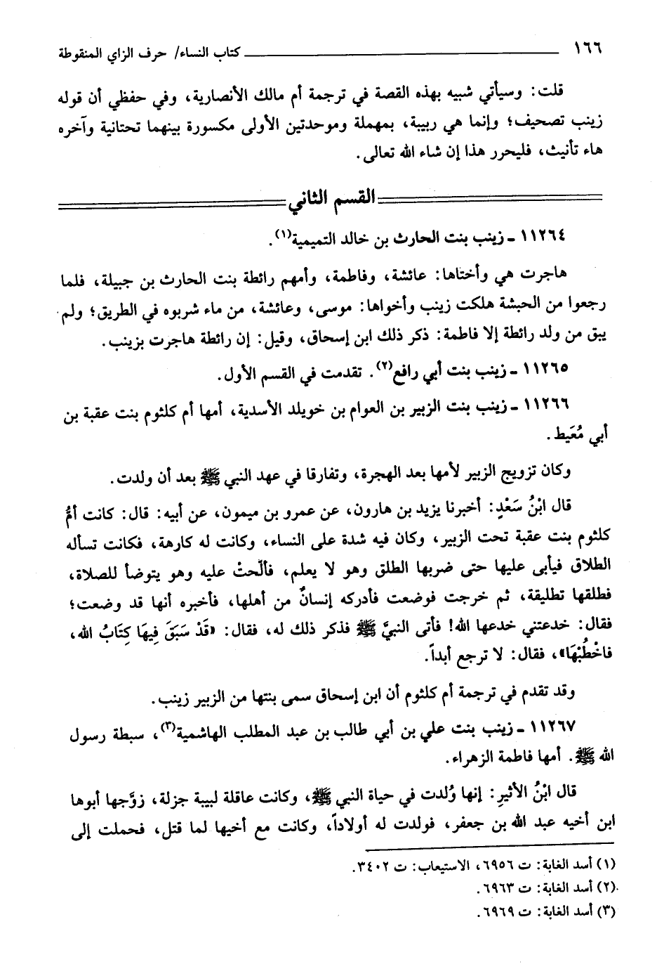 وقد تقدم في ترجمة أم كلثوم أن ابن إسحاق سمى بنتها من الزبير زينب.