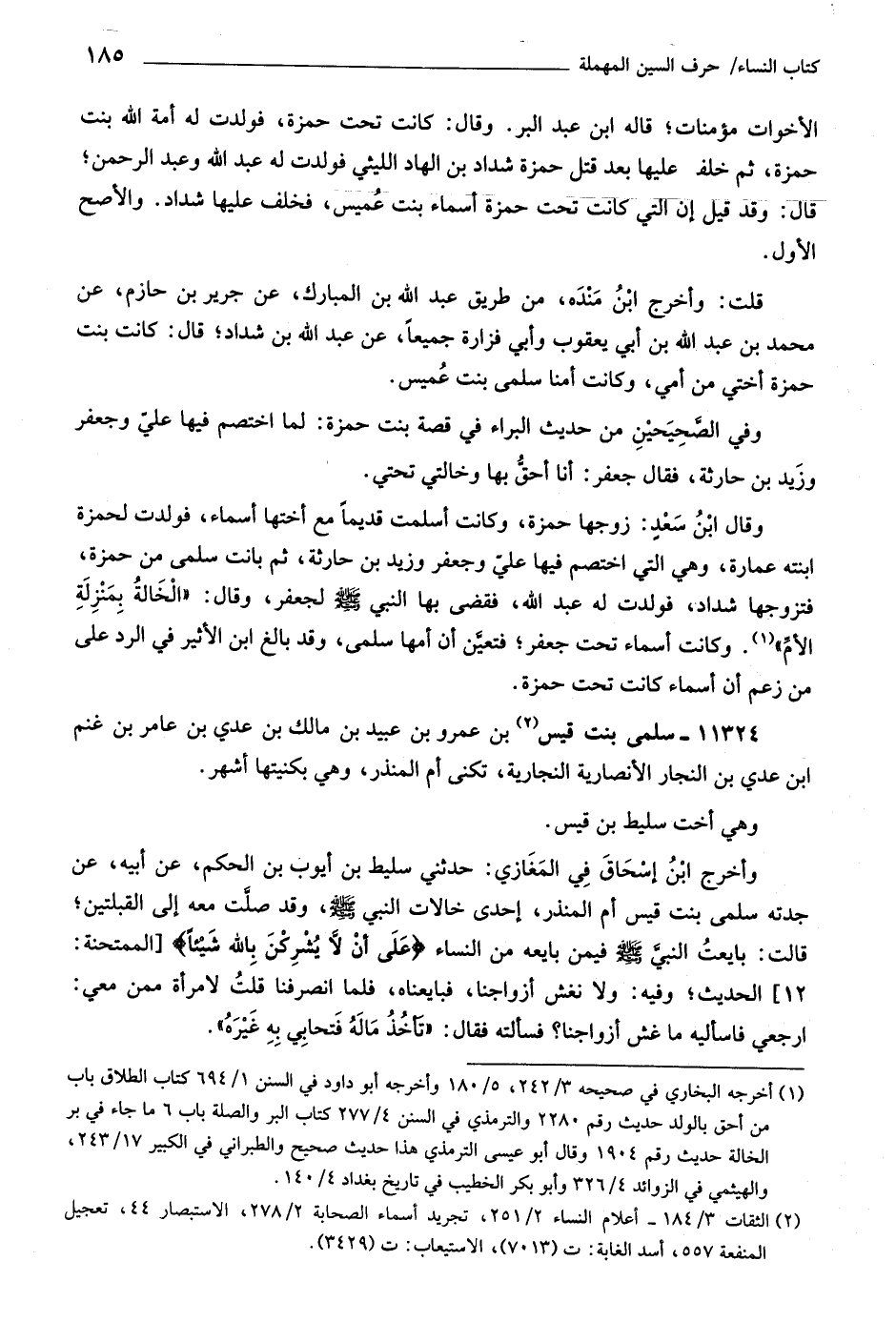 (٢) الثقات ٣/ ١٨٤- أعلام النساء ٢/ ٢٥١، تجريد أسماء الصحابة ٢/ ٢٧٨، الاستبصار ٤٤، تعجيل المنفعة ٥٥٧، أسد الغابة: ت (٧٠١٣) ، الاستيعاب: ت (٣٤٢٩) .
