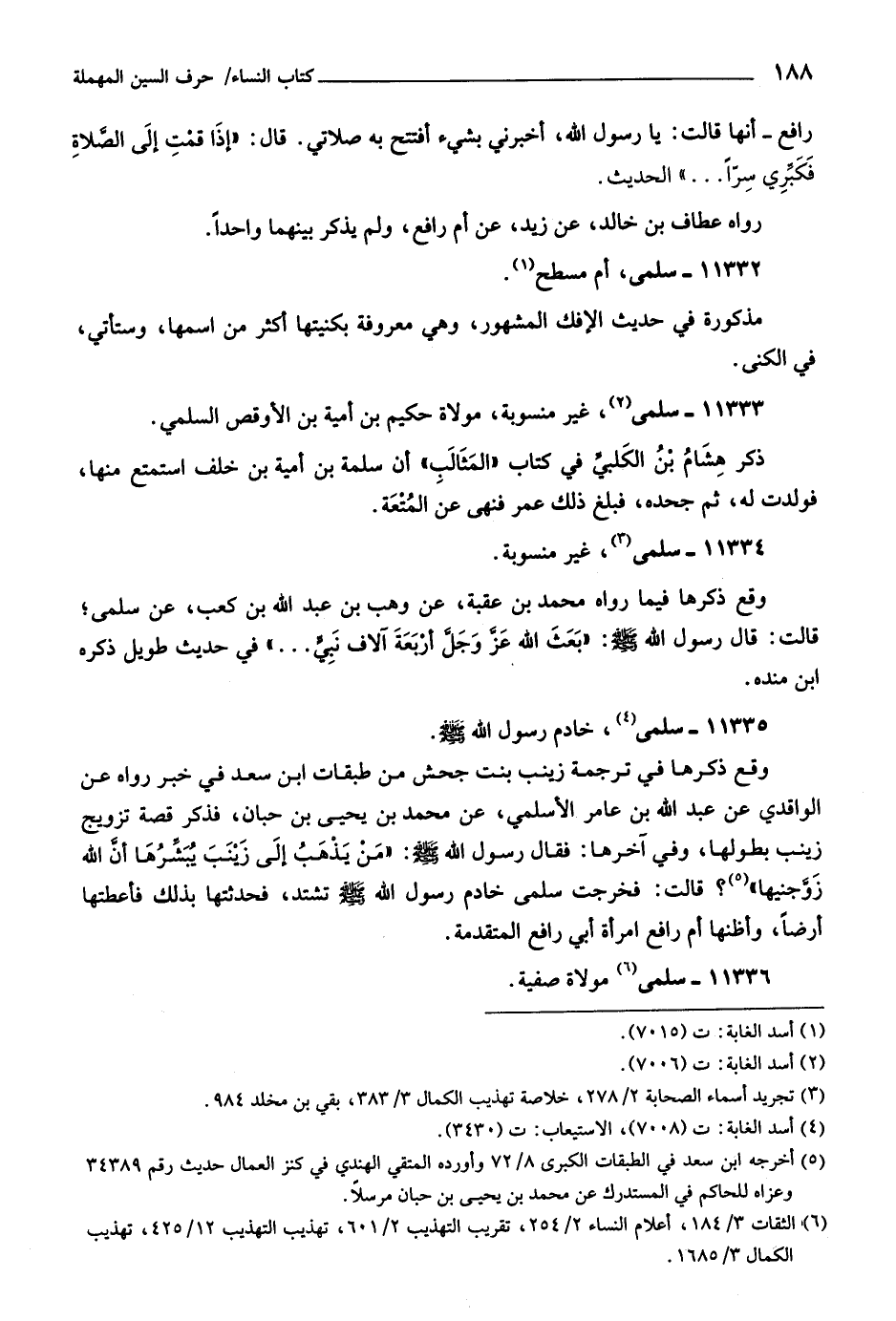 (٦) الثقات ٣/ ١٨٤، أعلام النساء ٢/ ٢٥٤، تقريب التهذيب ٢/ ٦٠١، تهذيب التهذيب ١٢/ ٤٢٥، تهذيب الكمال ٣/ ١٦٨٥.