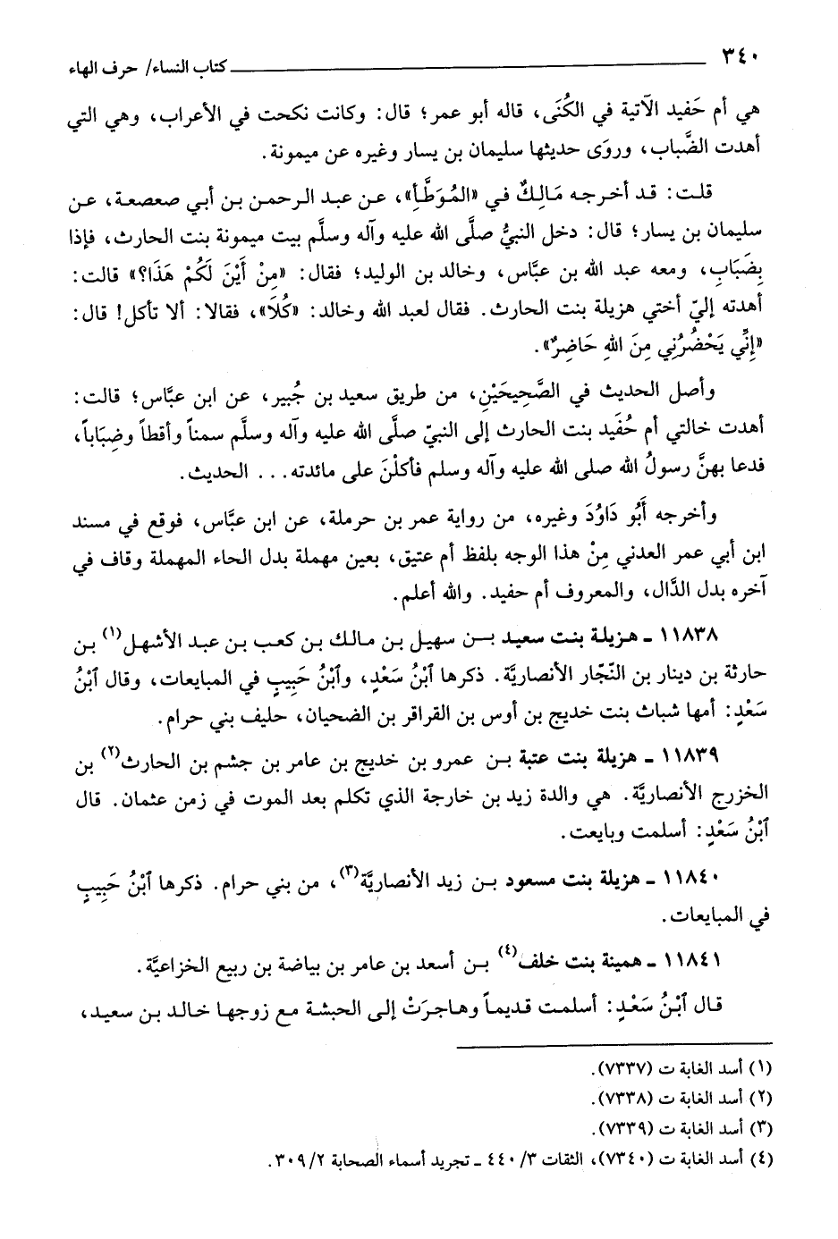 أهدت خالتي أم حفيد بنت الحارث إلى النبيّ صلّى اللَّه عليه وآله وسلم سمنا وأقطا وضبابا، فدعا بهنّ رسول اللَّه صلّى اللَّه عليه وآله وسلم فأكلن على مائدته ... الحديث.