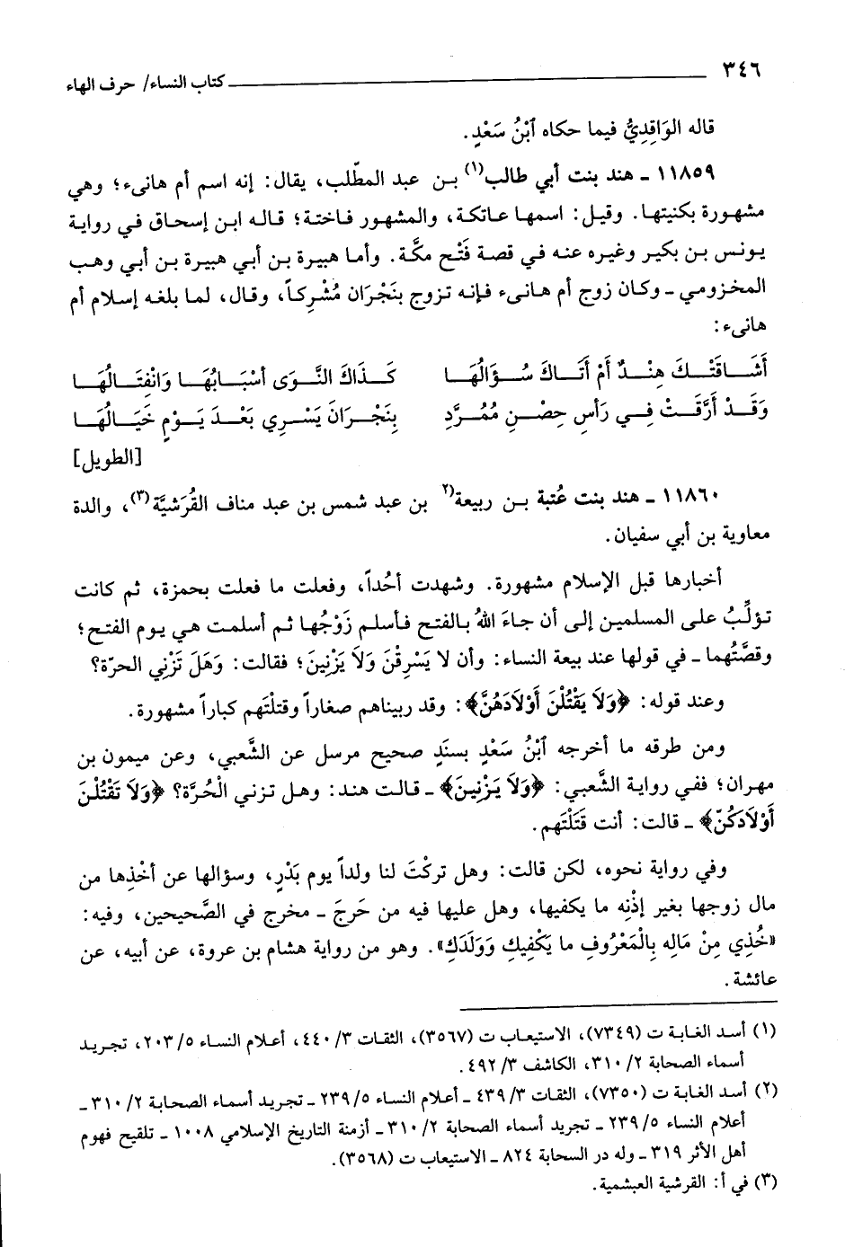 ومن طرقه ما أخرجه ابن سعد بسند صحيح مرسل عن الشّعبي، وعن ميمون بن مهران، ففي رواية الشّعبي: وَلا يَزْنِينَ- قالت هند: وهل تزني الحرّة؟ وَلَا تَقْتُلْنَ أَوْلَادَكُنَّ- قالت: أنت قتلتهم.