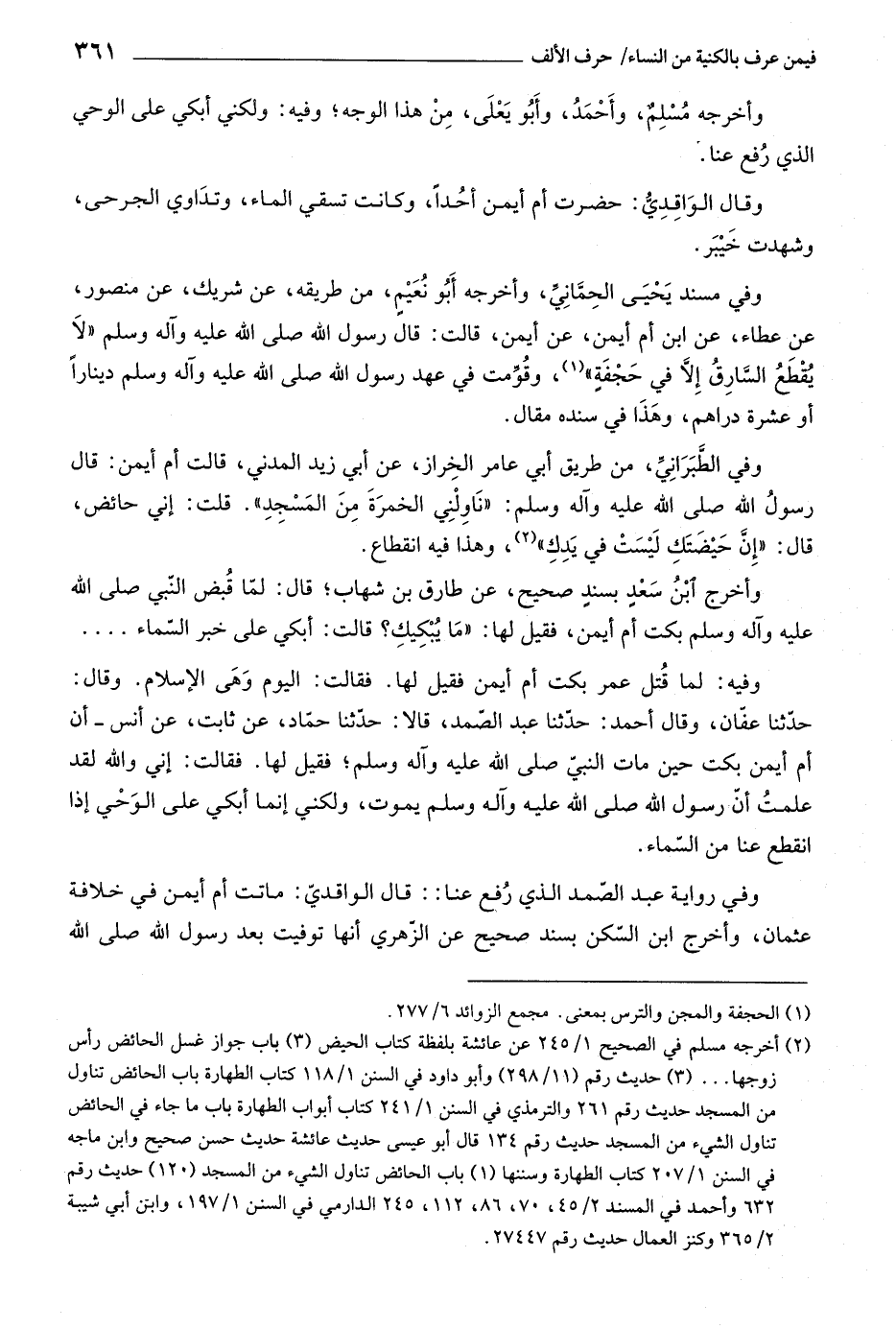 وأخرج ابن سعد بسند صحيح، عن طارق بن شهاب، قال: لمّا قبض النّبي صلّى اللَّه عليه وآله وسلم بكت أم أيمن، فقيل لها: «ما يبكيك؟ قالت: أبكي على خبر السّماء ...