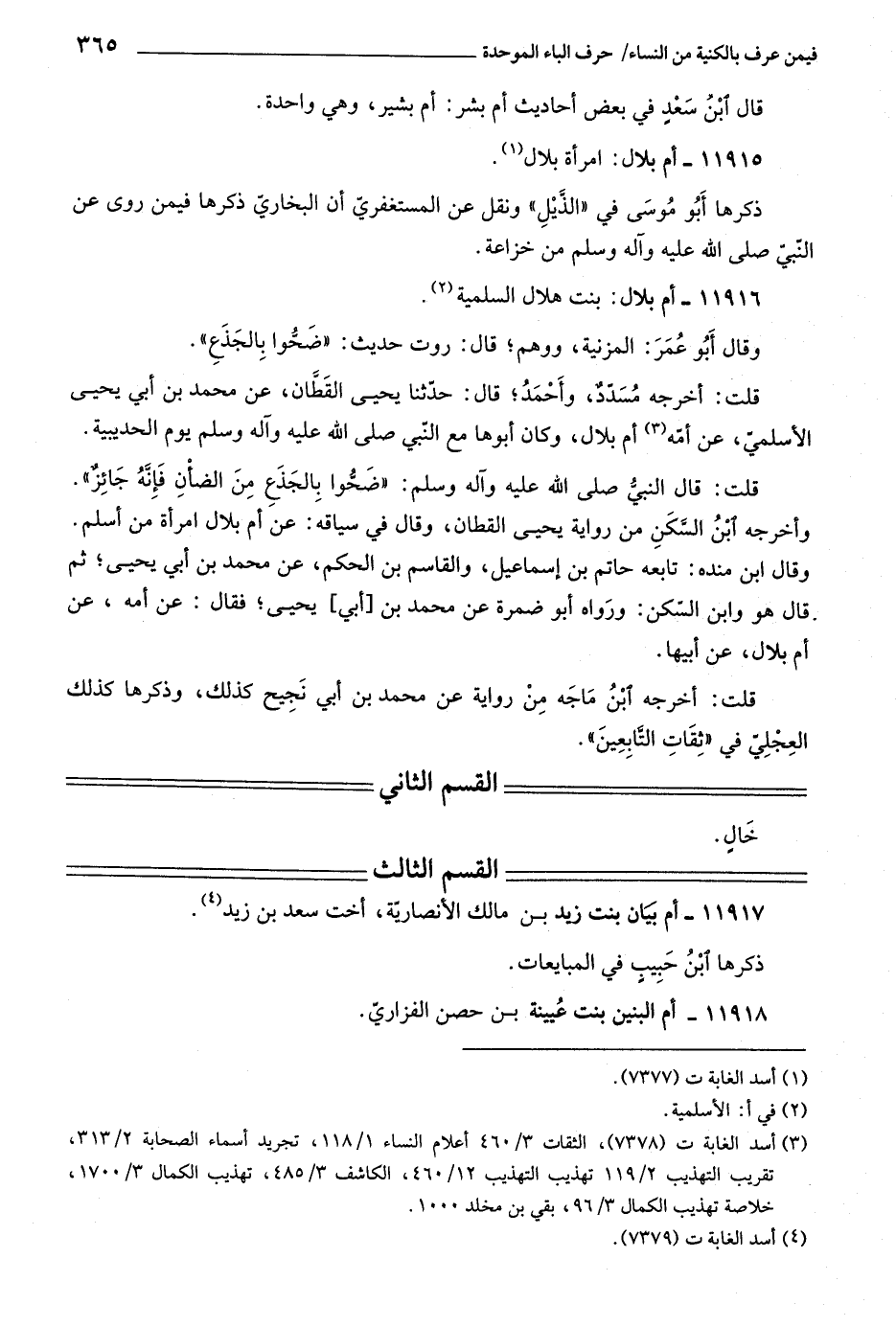 (٣) أسد الغابة ت (٧٣٧٨) ، الثقات ٣/ ٤٦٠ أعلام النساء ١/ ١١٨، تجريد أسماء الصحابة ٢/ ٣١٣، تقريب التهذيب ٢/ ١١٩ تهذيب التهذيب ١٢/ ٤٦٠، الكاشف ٣/ ٤٨٥، تهذيب الكمال ٣/ ١٧٠٠، خلاصة تهذيب الكمال ٣/ ٩٦، بقي بن مخلد ١٠٠٠.