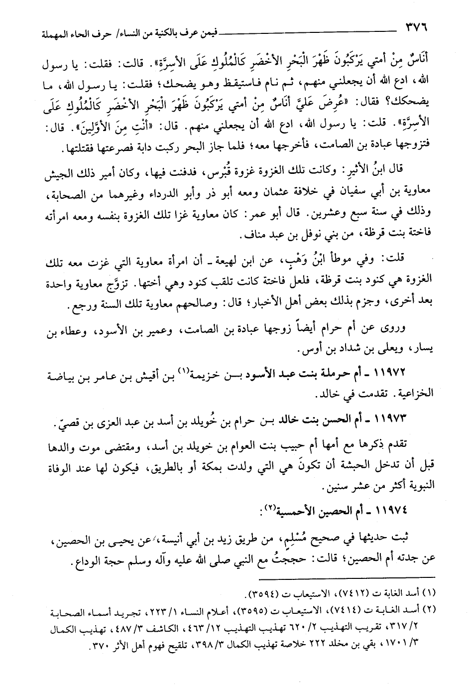 (٢) أسد الغابة ت (٧٤١٤) ، الاستيعاب ت (٣٥٩٥) ، أعلام النساء ١/ ٢٢٣، تجريد أسماء الصحابة ٢/ ٣١٧، تقريب التهذيب ٢/ ٦٢٠ تهذيب التهذيب ١٢/ ٤٦٣، الكاشف ٣/ ٤٨٧، تهذيب الكمال ٣/ ١٧٠١، بقي بن مخلد ٢٢٢ خلاصة تهذيب الكمال ٣/ ٣٩٨، تلقيح فهوم أهل الأثر ٣٧٠.