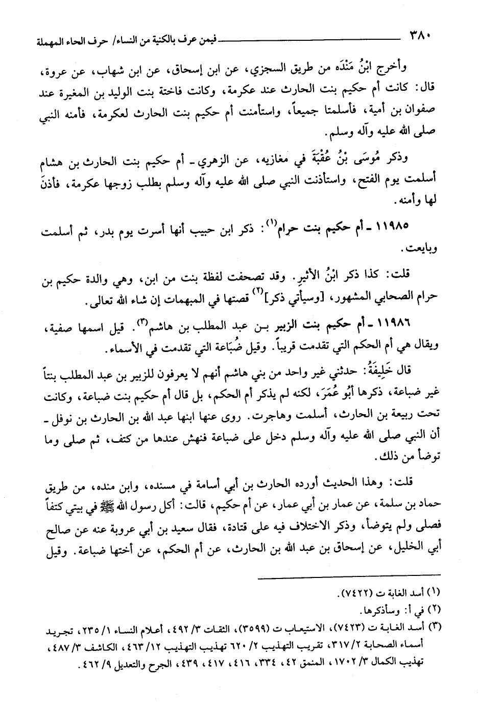 قلت: كذا ذكر ابن الأثير. وقد تصحفت لفظة بنت من ابن، وهي والدة حكيم بن حرام الصحابي المشهور، [وسيأتي ذكر] «٢» قصتها في المبهمات إن شاء اللَّه تعالى.
