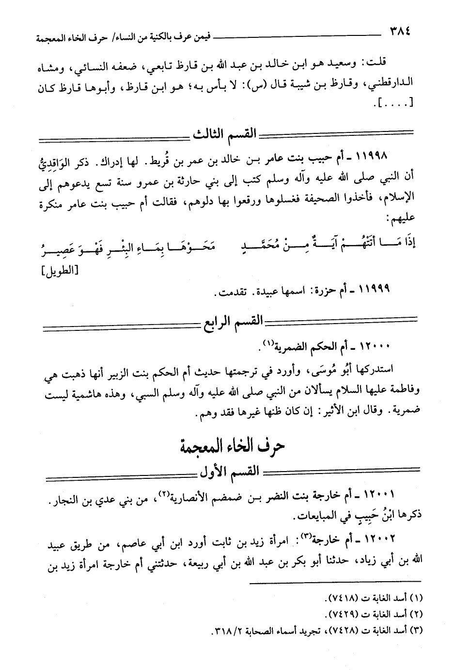 استدركها أبو موسى، وأورد في ترجمتها حديث أم الحكم بنت الزبير أنها ذهبت هي وفاطمة عليها السلام يسألان من النبي صلّى اللَّه عليه وآله وسلم السبي، وهذه هاشمية ليست ضمرية. وقال ابن الأثير: إن كان ظنها غيرها فقد وهم.