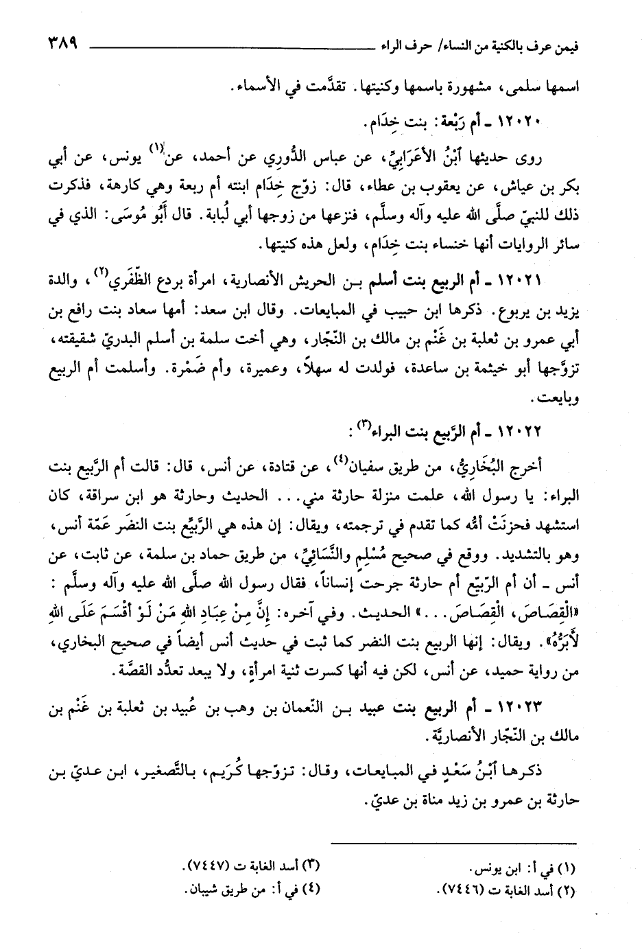 ١٢٠٢٢- أم الرّبيع بنت البراء «٣»