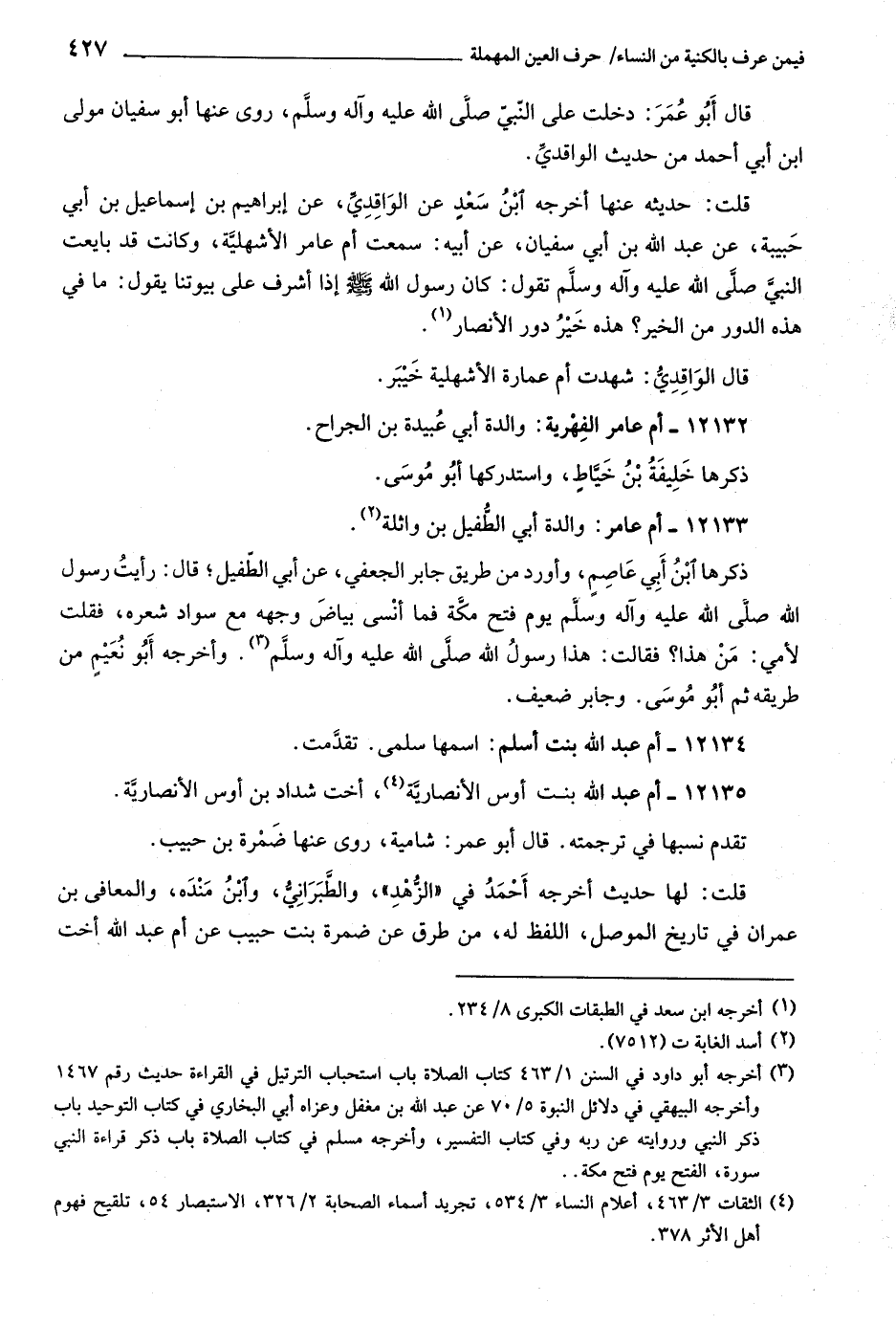 (٤) الثقات ٣/ ٤٦٣، أعلام النساء ٣/ ٥٣٤، تجريد أسماء الصحابة ٢/ ٣٢٦، الاستبصار ٥٤، تلقيح فهوم أهل الأثر ٣٧٨.