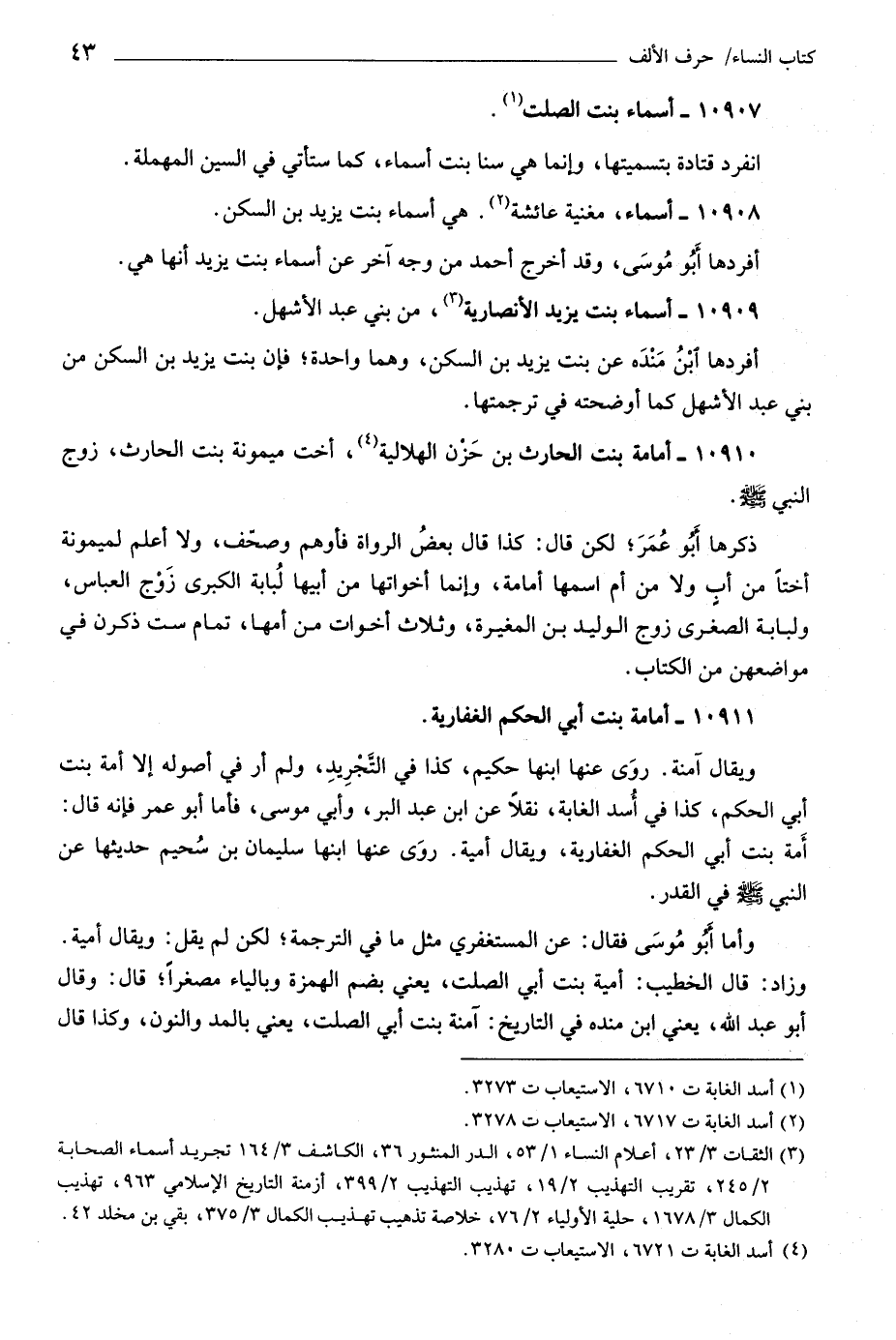 ١٠٩٠٩- أسماء بنت يزيد الأنصارية «٣» ،