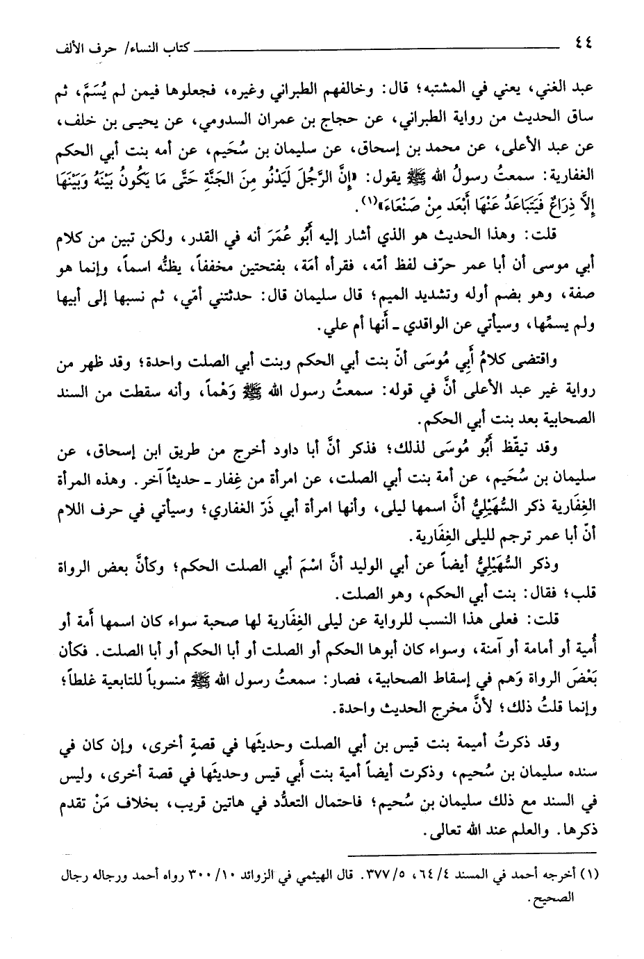 واقتضى كلام أبي موسى أنّ بنت أبي الحكم وبنت أبي الصلت واحدة، وقد ظهر من رواية غير عبد الأعلى أنّ في قوله: سمعت رسول اللَّه صلّى اللَّه عليه وسلّم وهما، وأنه سقطت من السند الصحابية بعد بنت أبي الحكم.