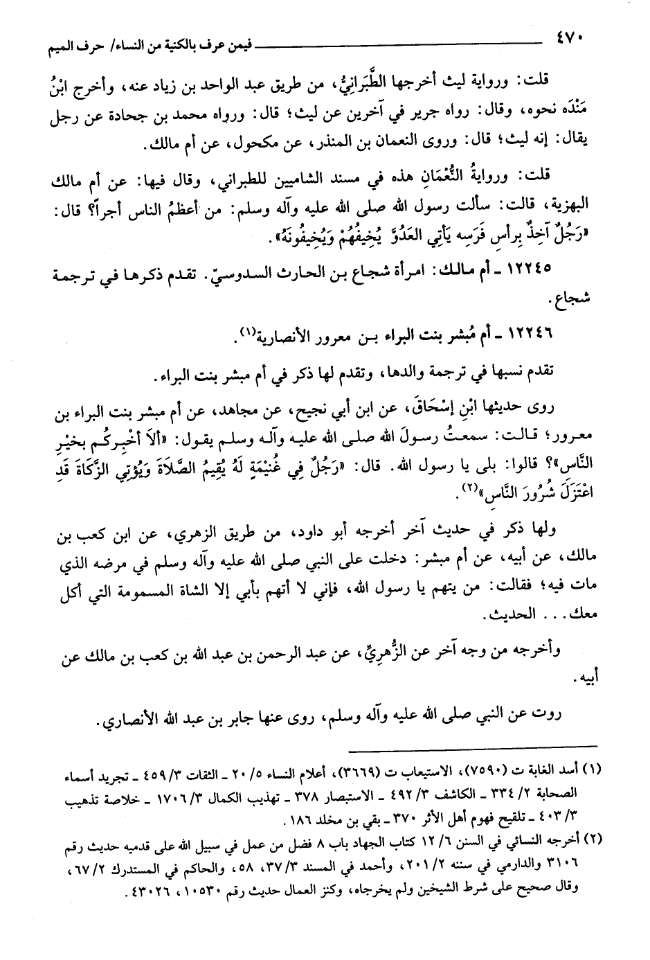 (١) أسد الغابة ت (٧٥٩٠) ، الاستيعاب ت (٣٦٦٩) ، أعلام النساء ٥/ ٢٠- الثقات ٣/ ٤٥٩- تجريد أسماء، الصحابة ٢/ ٣٣٤- الكاشف ٣/ ٤٩٢- الاستبصار ٧٨/ ٣- تهذيب الكمال ٣/ ١٧٠٦- خلاصة تذهيب ٣/ ٤٠٣- تلقيح فهوم أهل الأثر ٣٧٠- بقي بن مخلد ١٨٦.