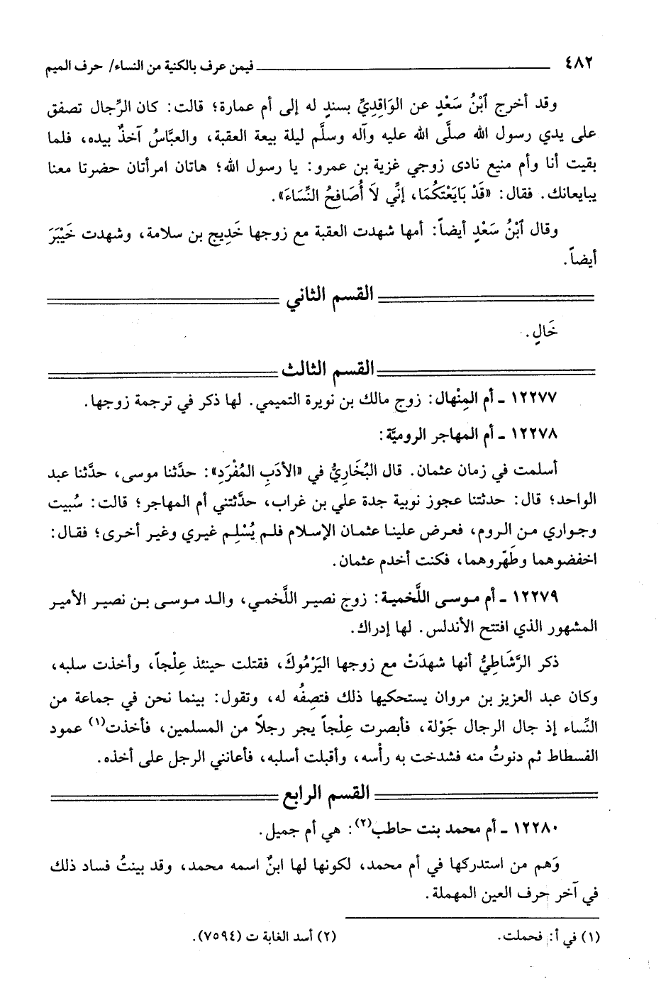 وهم من استدركها في أم محمد، لكونها لها ابن اسمه محمد، وقد بينت فساد ذلك في آخر حرف العين المهملة.