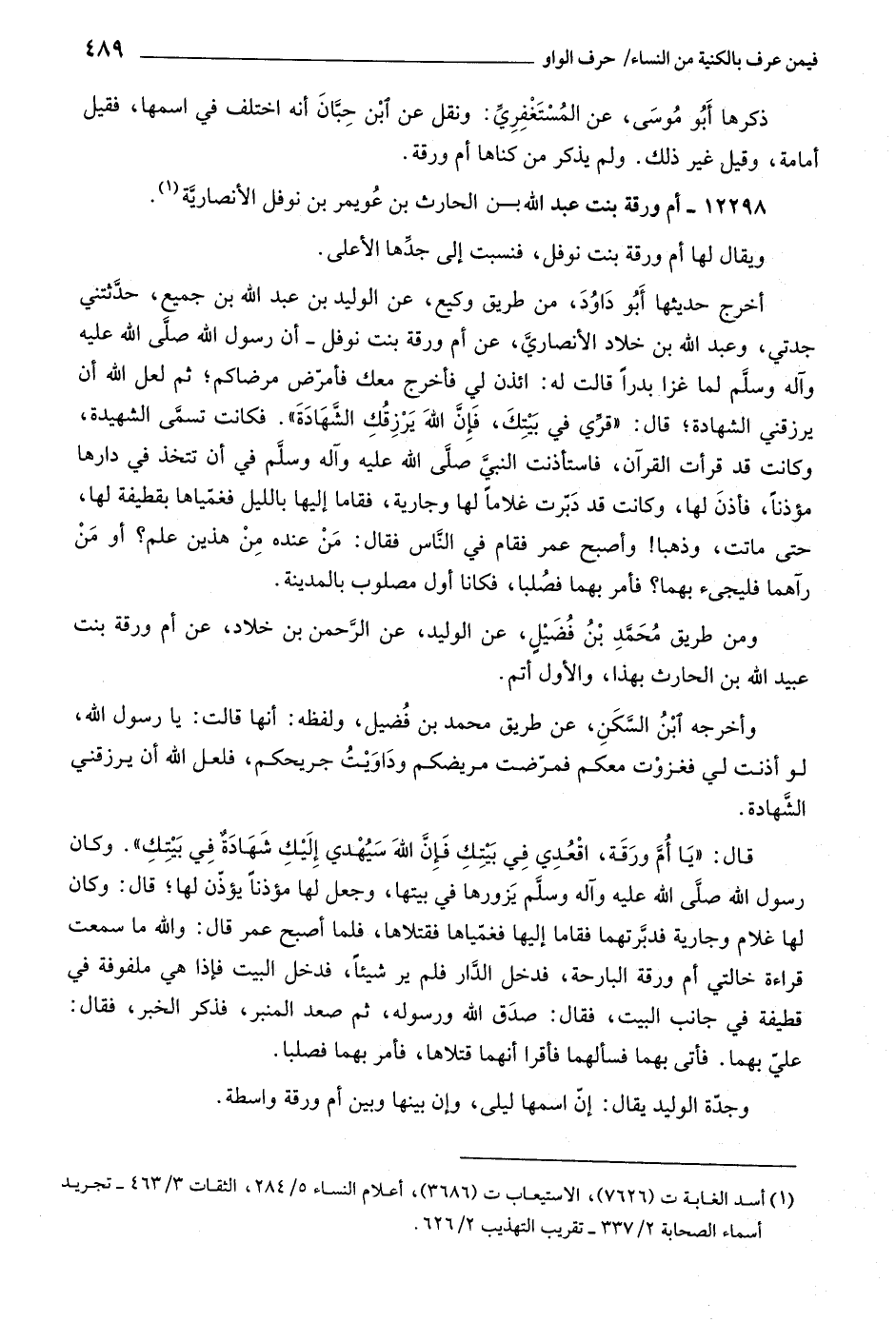 ١٢٢٩٨- أم ورقة بنت عبد اللَّه