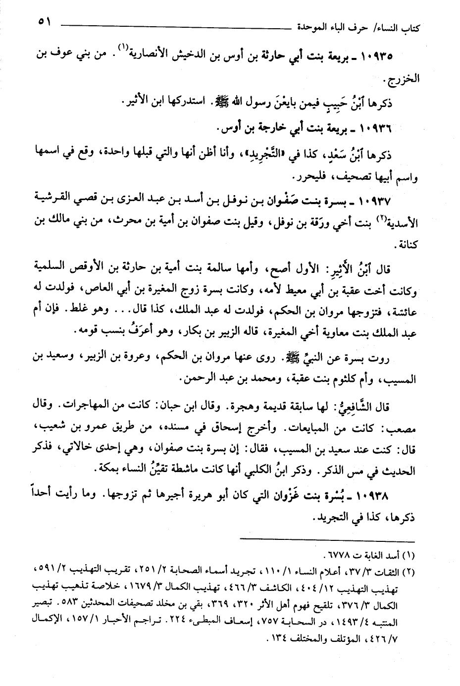 (٢) الثقات ٣/ ٣٧، أعلام النساء ١/ ١١٠، تجريد أسماء الصحابة ٢/ ٢٥١، تقريب التهذيب ٢/ ٥٩١، تهذيب التهذيب ١٢/ ٤٠٤، الكاشف ٣/ ٤٦٦، تهذيب الكمال ٣/ ١٦٧٩، خلاصة تهذيب تهذيب الكمال ٣/ ٣٧٦، تلقيح فهوم أهل الأثر ٣٢٠، ٣٦٩، بقي بن مخلد تصحيفات المحدثين ٥٨٣. تبصير المنتبه ٤/ ١٤٩٣، در السحابة ٧٥٧، إسعاف المبطإ ٢٢٤. تراجم الأحبار ١/ ١٥٧، الإكمال ٧/ ٤٢٦، المؤتلف والمختلف ١٣٤.