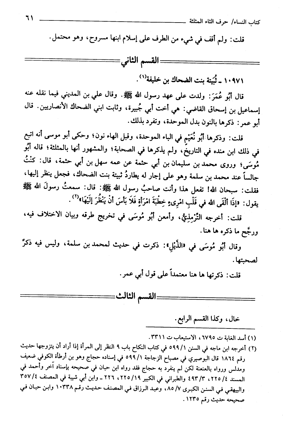 قلت: وذكرها أبو نعيم في الباء الموحدة، وقبل الهاء نون، وحكى أبو موسى أنه اتبع في ذلك ابن مندة في التاريخ، ولم يذكرها في الصحابة، والمشهور أنها بالمثلثة، قاله أبو موسى،