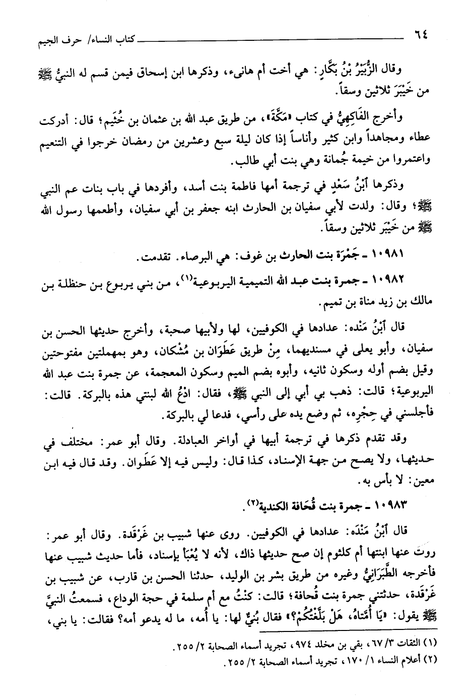 ١٠٩٨٣- جمرة بنت قحافة الكندية «٢» .