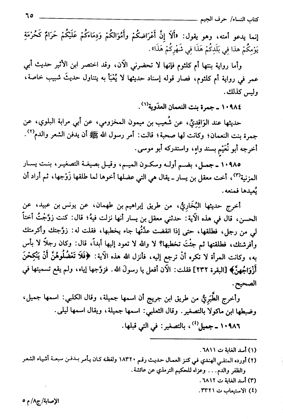١٠٩٨٤- جمرة بنت النعمان العدوية «١» .
