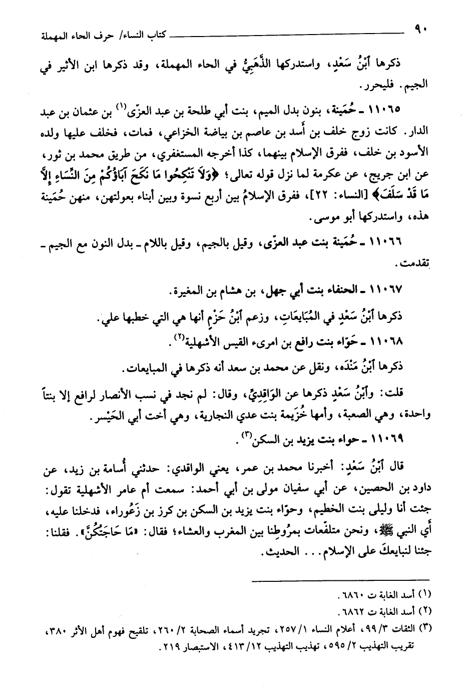 (٣) الثقات ٣/ ٩٩، أعلام النساء ١/ ٢٥٧، تجريد أسماء الصحابة ٢/ ٢٦٠، تلقيح فهوم أهل الأثر ٣٨٠، تقريب التهذيب ٢/ ٥٩٥، تهذيب التهذيب ١٢/ ٤١٣، الاستبصار ٢١٩.