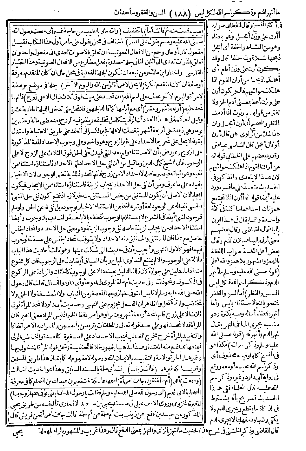 (لا يحل لامرأة تؤمن بالله واليوم الآخر) جملة في موضع جر صفة لامرأة واليوم الآخر عطف على اسم الله (أن تحدّ على ميت فوق ثلاث ليال إلا على زوج) فإنها تحد عليه (أربعة أشهر وعشرًا) أي مع أيامها كما قاله الجمهور فلا تحل حتى تدخل الليلة الحادية عشرة، وقيل: الحكمة في هذا العدد أن الولد يتكامل تخليقه وينفخ فيه الروح بعد مضي مائة وعشرين يومًا وهي زيادة على أربعة أشهر بنقصان الأهلة فجبر الكسر إلى العقد على طريق الاحتياط واستدلّ بقوله لا يحل على تحريم الإحداد على غير الزوج وهو واضح وعلى وجوب الإحداد المدة المذكورة على الزوج وعورض بأن الاستثناء وقع بعد النفي فيدل علي الحل فوق الثلاث على الزوج لا على الوجوب قال الشيخ كمال الدين: وما قيل من أن نفي حل الإحداد نفي الإحداد فاستثناؤه استثناء من نفيه