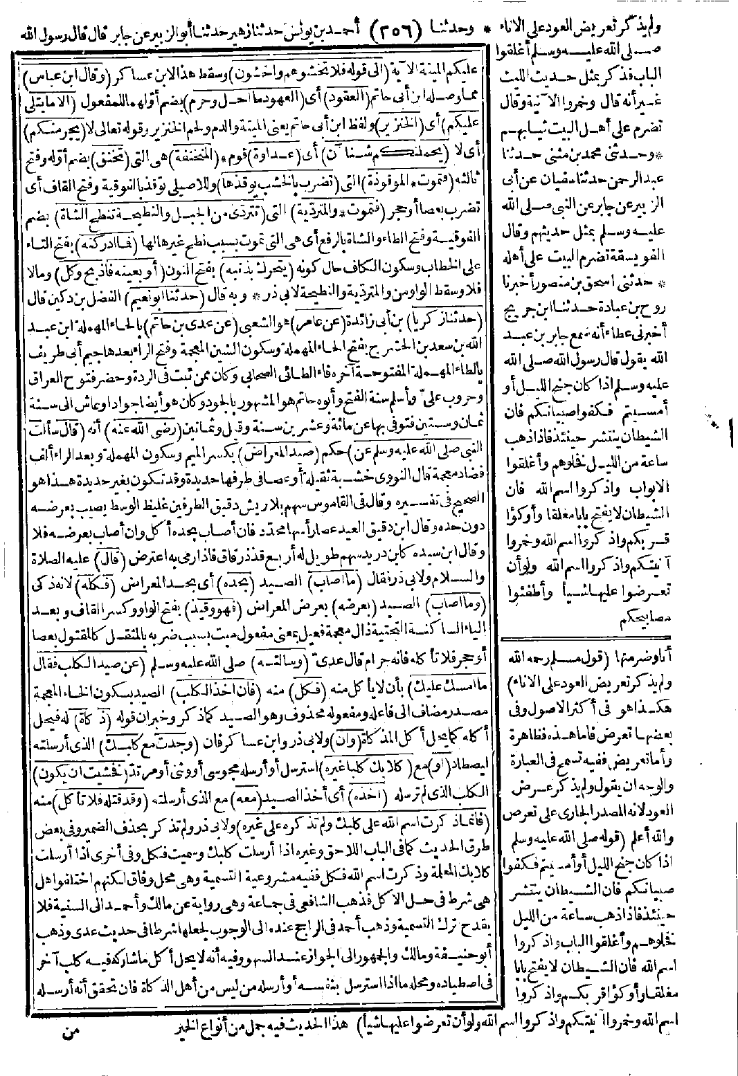 5475 - حَدَّثَنَا أَبُو نُعَيْمٍ حَدَّثَنَا زَكَرِيَّاءُ عَنْ عَامِرٍ عَنْ عَدِيِّ بْنِ حَاتِمٍ -رضي الله عنه- قَالَ: سَأَلْتُ النَّبِيَّ -صَلَّى اللَّهُ عَلَيْهِ وَسَلَّمَ- عَنْ صَيْدِ الْمِعْرَاضِ قَالَ: «مَا أَصَابَ بِحَدِّهِ، فَكُلْهُ. وَمَا أَصَابَ بِعَرْضِهِ فَهْوَ وَقِيذٌ». وَسَأَلْتُهُ عَنْ صَيْدِ الْكَلْبِ فَقَالَ: «مَا أَمْسَكَ عَلَيْكَ فَكُلْ، فَإِنَّ أَخْذَ الْكَلْبِ ذَكَاةٌ، وَإِنْ وَجَدْتَ مَعَ كَلْبِكَ، أَوْ كِلاَبِكَ كَلْبًا غَيْرَهُ، فَخَشِيتَ أَنْ يَكُونَ أَخَذَهُ مَعَهُ وَقَدْ قَتَلَهُ فَلاَ تَأْكُلْ فَإِنَّمَا ذَكَرْتَ اسْمَ اللَّهِ عَلَى كَلْبِكَ وَلَمْ تَذْكُرْهُ عَلَى غَيْرِهِ».