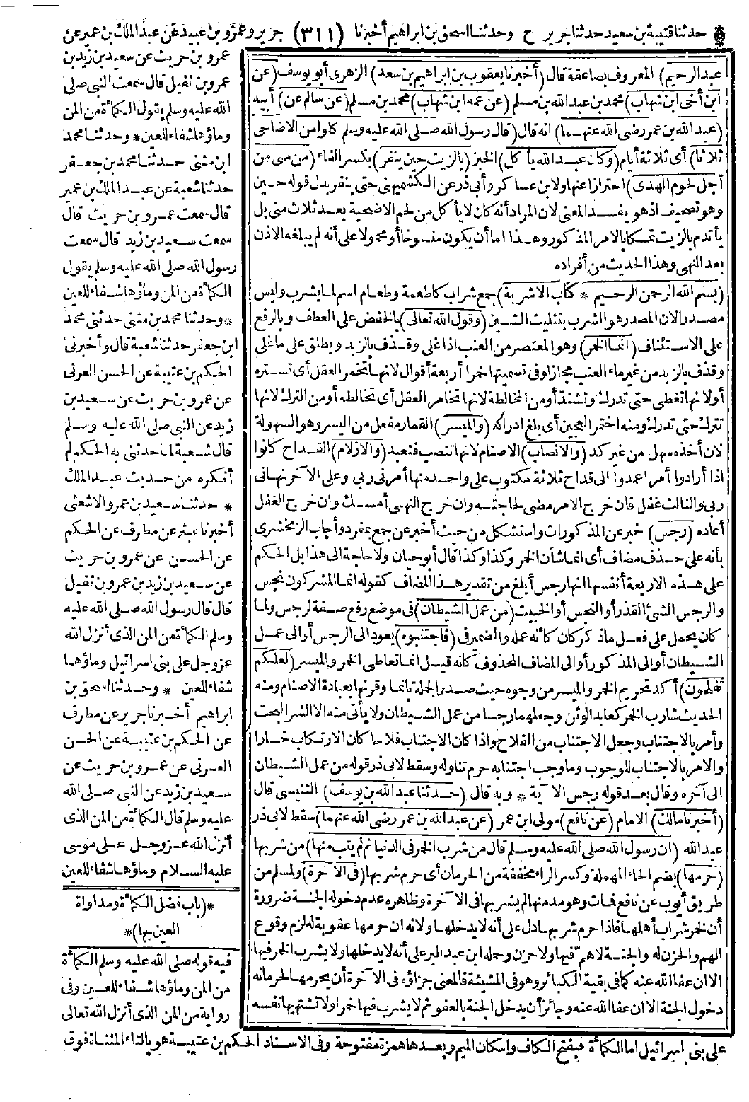عبد الرحيم) المعروف بصاعقة قال: (أخبرنا يعقوب بن إبراهيم بن سعد) الزهري أبو يوسف (عن ابن أخي ابن شهاب) محمد بن عبد الله بن مسلم (عن عمه ابن شهاب) محمد بن مسلم (عن سالم عن) أبي (عبد الله بن عمر -رضي الله عنهما-) أنه قال: (قال رسول الله -صَلَّى اللَّهُ عَلَيْهِ وَسَلَّمَ-):