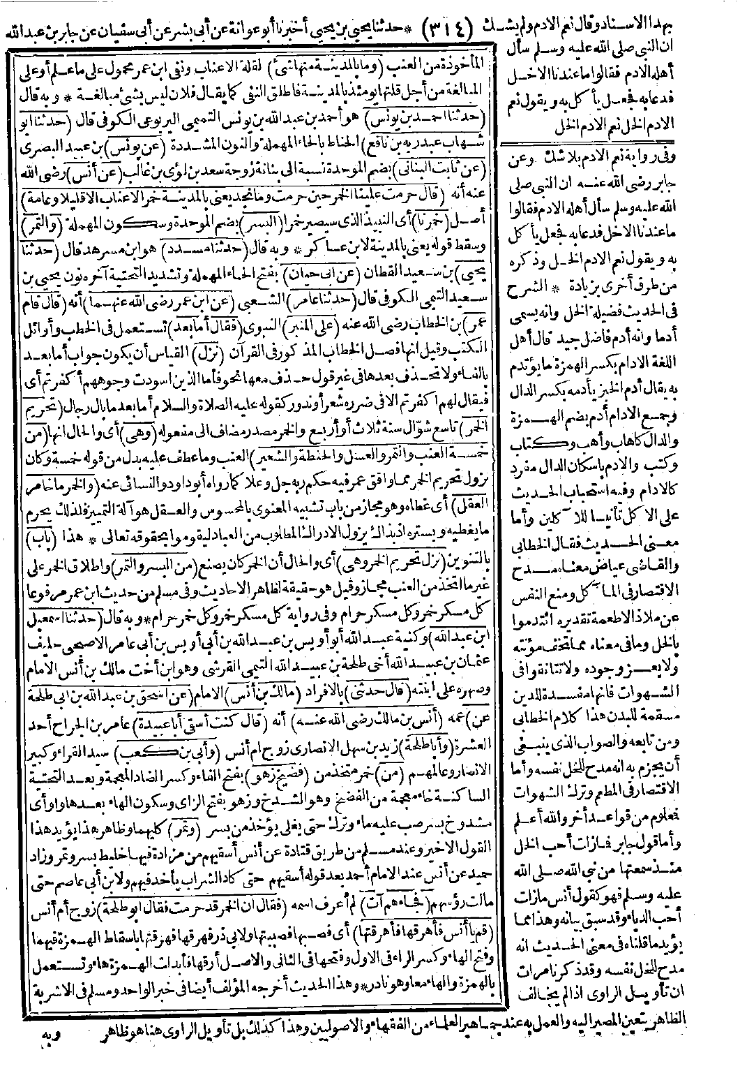 عَبْدِ اللَّهِ بْنِ أَبِي طَلْحَةَ عَنْ أَنَسِ بْنِ مَالِكٍ -رضي الله عنه- قَالَ: كُنْتُ أَسْقِي أَبَا عُبَيْدَةَ وَأَبَا طَلْحَةَ وَأُبَيَّ بْنَ كَعْبٍ مِنْ فَضِيخِ زَهْوٍ وَتَمْرٍ فَجَاءَهُمْ آتٍ فَقَالَ: إِنَّ الْخَمْرَ قَدْ حُرِّمَتْ. فَقَالَ: أَبُو طَلْحَةَ قُمْ يَا أَنَسُ فَأَهْرِقْهَا، فَأَهْرَقْتُهَا.