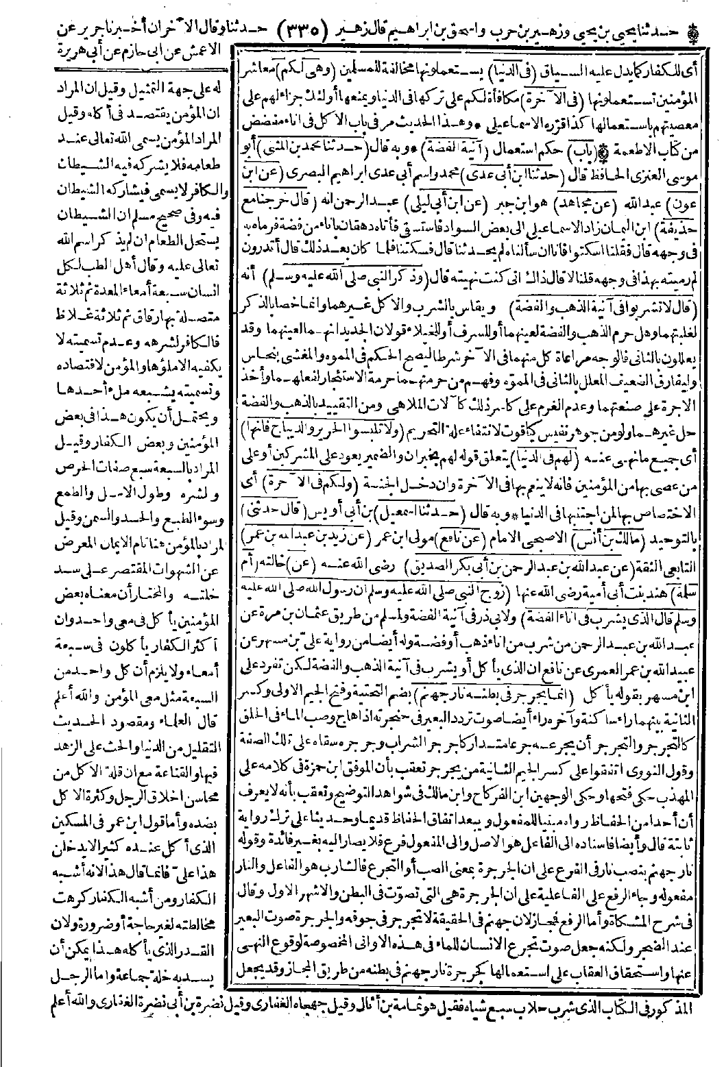 (لا تشربوا في آنية الذهب والفضة) ويقاس بالشرب والأكل غيرهما وإنما خصا بالذكر لغلبتهما وهل حرم الذهب والفضة لعينهما أو للسرف أو للخيلاء قولان. الجديد أنهما لعينهما، وقد يعللون بالثاني فالوجه مراعاة كل منهما في الآخر شرطًا ليصح الحكم في المموّه والمغشى بنحاس وليفارق الضعيف المعلل بالثاني في المموّه وفهم من حرمتهما حرمة الاستئجار لفعلهما وأخذ الأجرة على صنعتهما وعدم الغرم على كاسر ذلك كآلات الملاهي ومن التقييد بالذهب والفضة حلّ غيرهما ولو من جوهر نفيس كياقوت لانتفاء علة التحريم (ولا تلبسوا الحرير والديباج فإنها) أي جميع ما نهى عنه (لهم في الدنيا) يتعلق قوله لهم بخبر إن والضمير يعود على المشركين أو على من عصى بها من المؤمنين فإنه لا ينعم بها في الآخرة وإن دخل الجنة (ولكم في الآخرة) أي الاختصاص بها لمن اجتنبها في الدنيا.