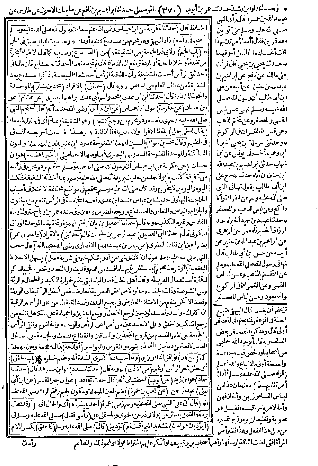 الحافظ قال: (حدّثنا عكرمة عن ابن عباس -رضي الله عنهما- أن رسول الله -صَلَّى اللَّهُ عَلَيْهِ وَسَلَّمَ- احتجم في رأسه) زاد البيهقي وهو محرم من صداع كان به أو داء.